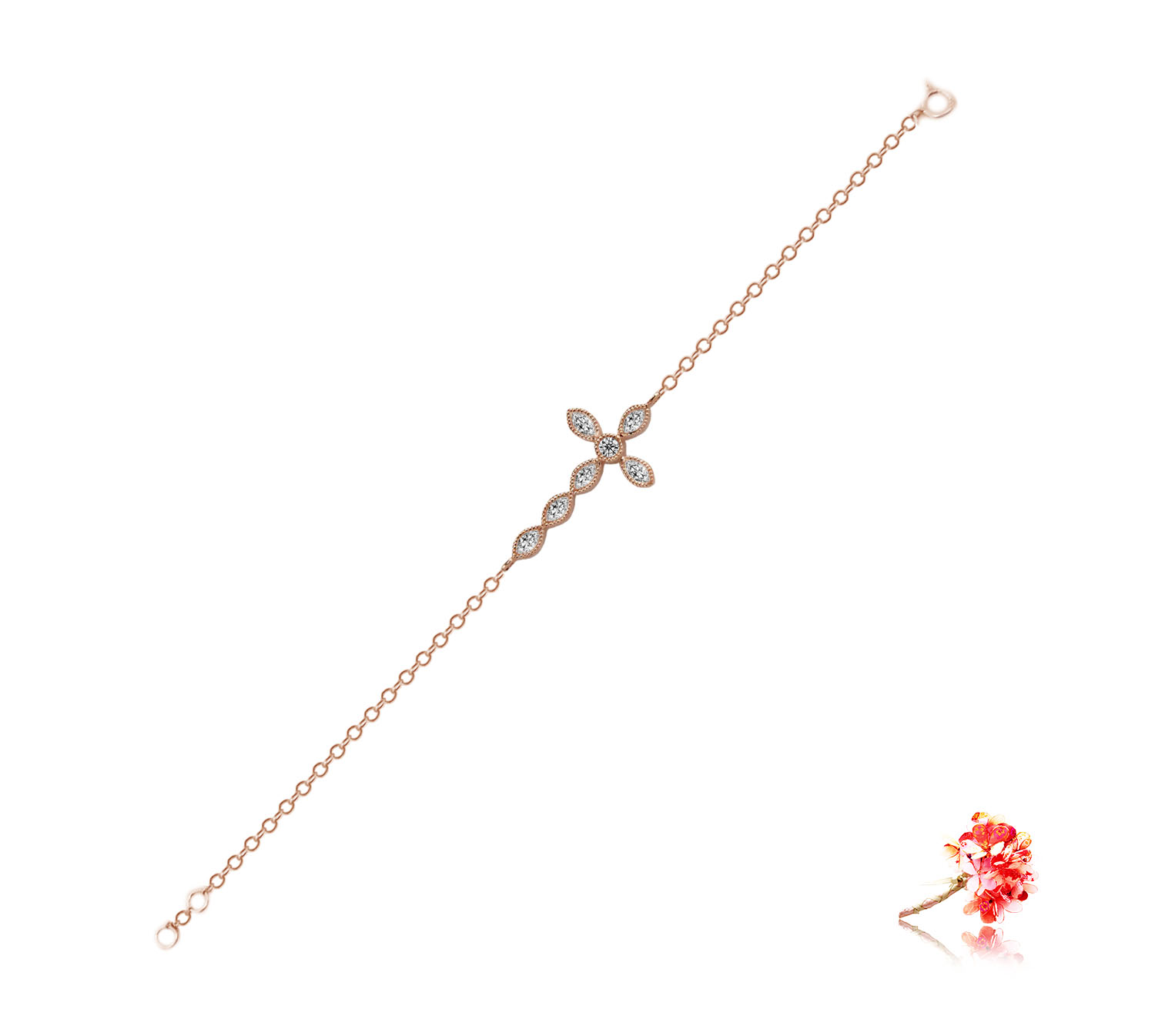 Cross diamond bracelet scintillating with 7 diamonds 0.16 carat in 18k rose gold (BL00173). #eClarity