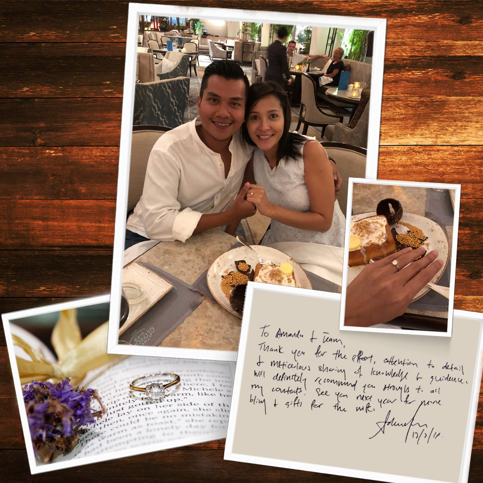 “To Amanda & team, thank you for the effort, attention to detail & meticulous sharing of knowledge & guidance. Will definitely recommend you strongly to all my contacts! See you next year for more bling & gifts for the wife.” – Adamson