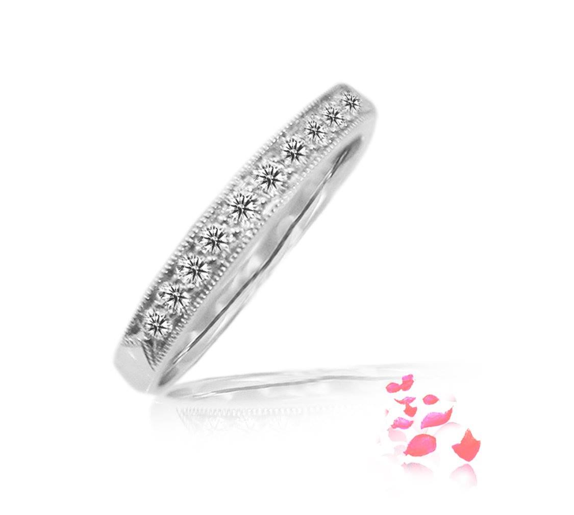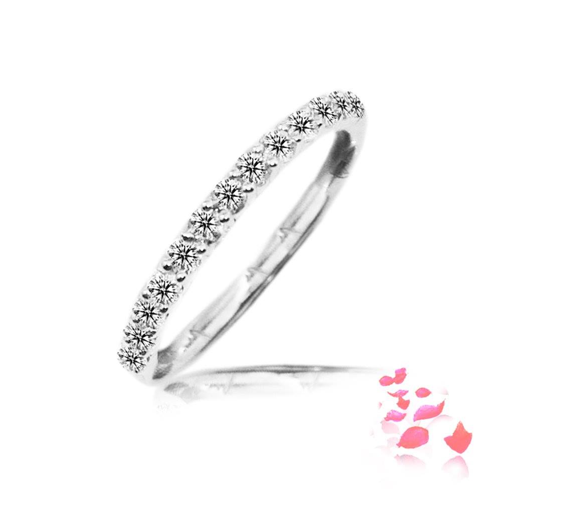 Diamond ring scintillating with 18 tappered diamonds 0.51 carat in 18k gold, white. (R00058)