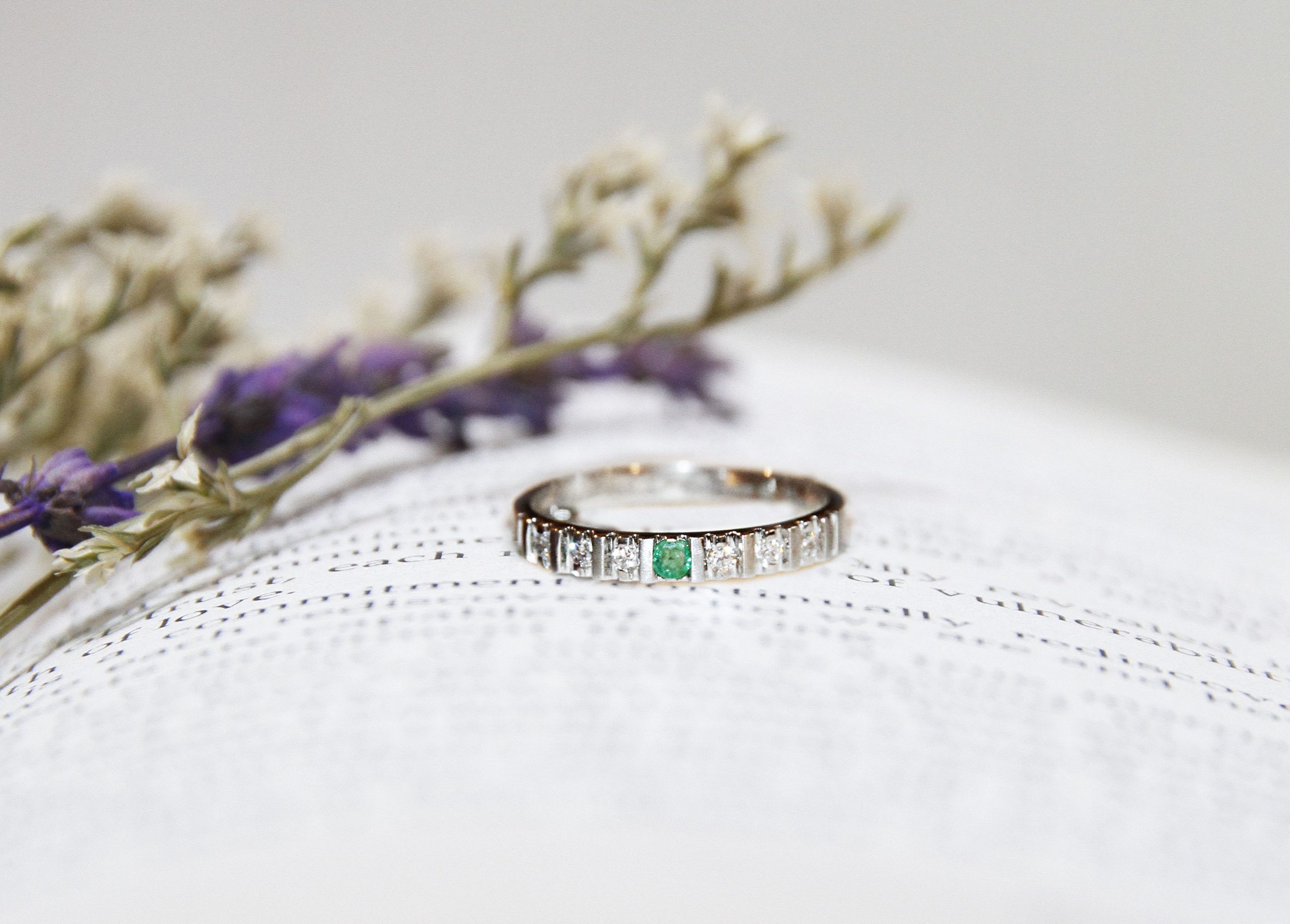 Like pavé setting, channel setting involves adding small diamonds or other gemstones to the shank of an engagement ring. The technique involves mounting small stones into a channel made from two precious metal alloy strips, which hold the stones securely in place. The channel setting becomes a popular choice with its secure, sleek and stylish effect on the ring.
