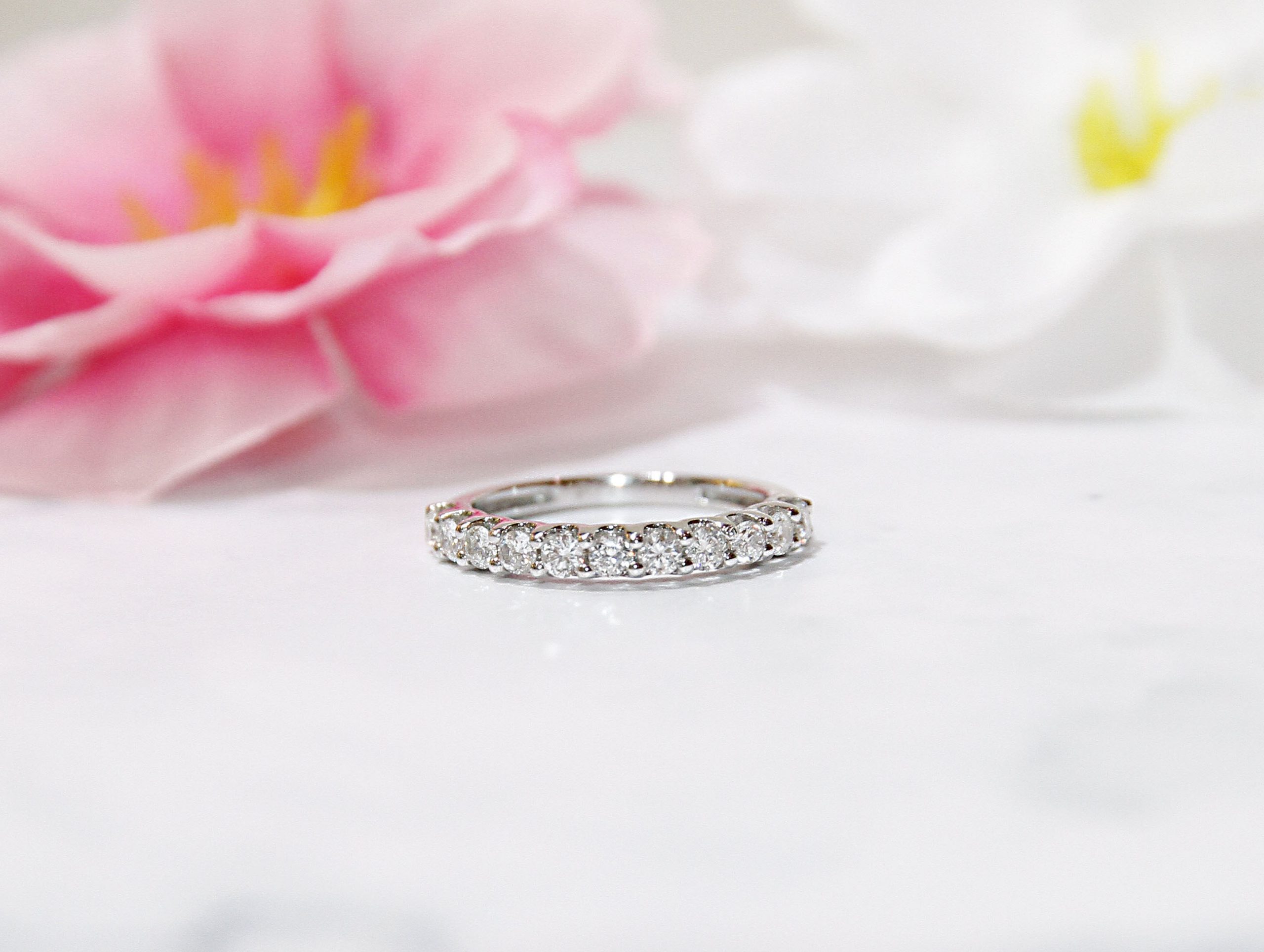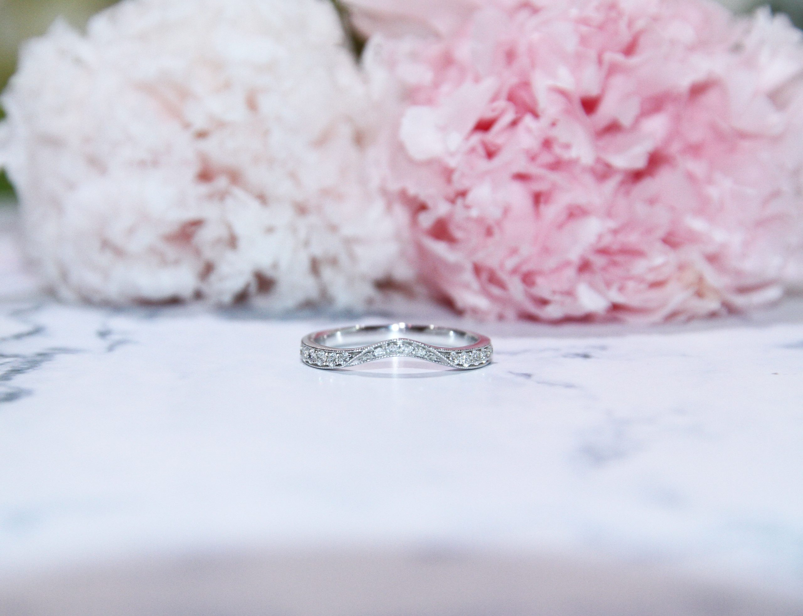 A curved eternity ring is often used as a matching band and stacked with an engagement ring or a cocktail ring. A variety of designs with different curvature are available in the market to accommodate the structure of another ring. Stackable rings allow you to express your creativity in matching jewellery and provide a high fashion sense when the rings are in good fit.
