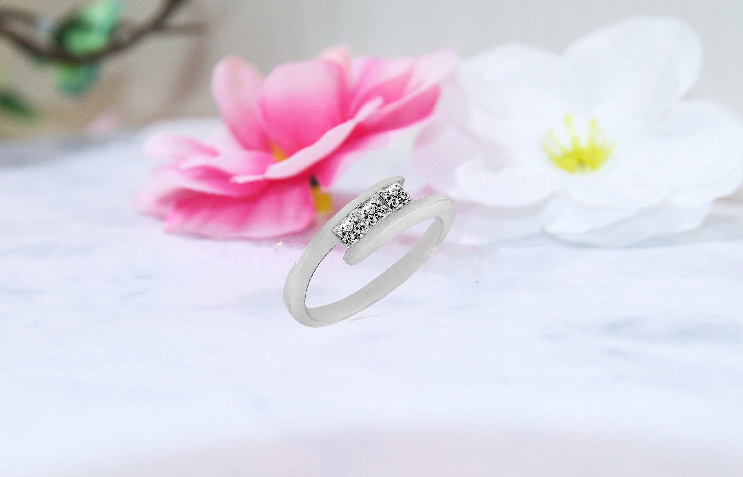 Shared prong setting is designed to enhance the diamond’s exposure to the lighting by further reducing the metal in between two diamonds. The prongs will be less obvious in this setting and allow better light performance of the diamonds.