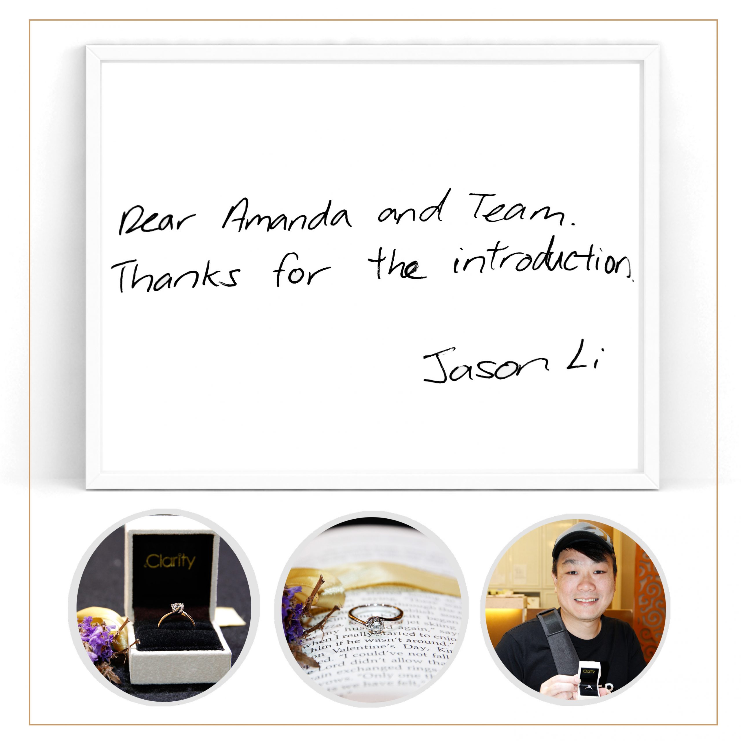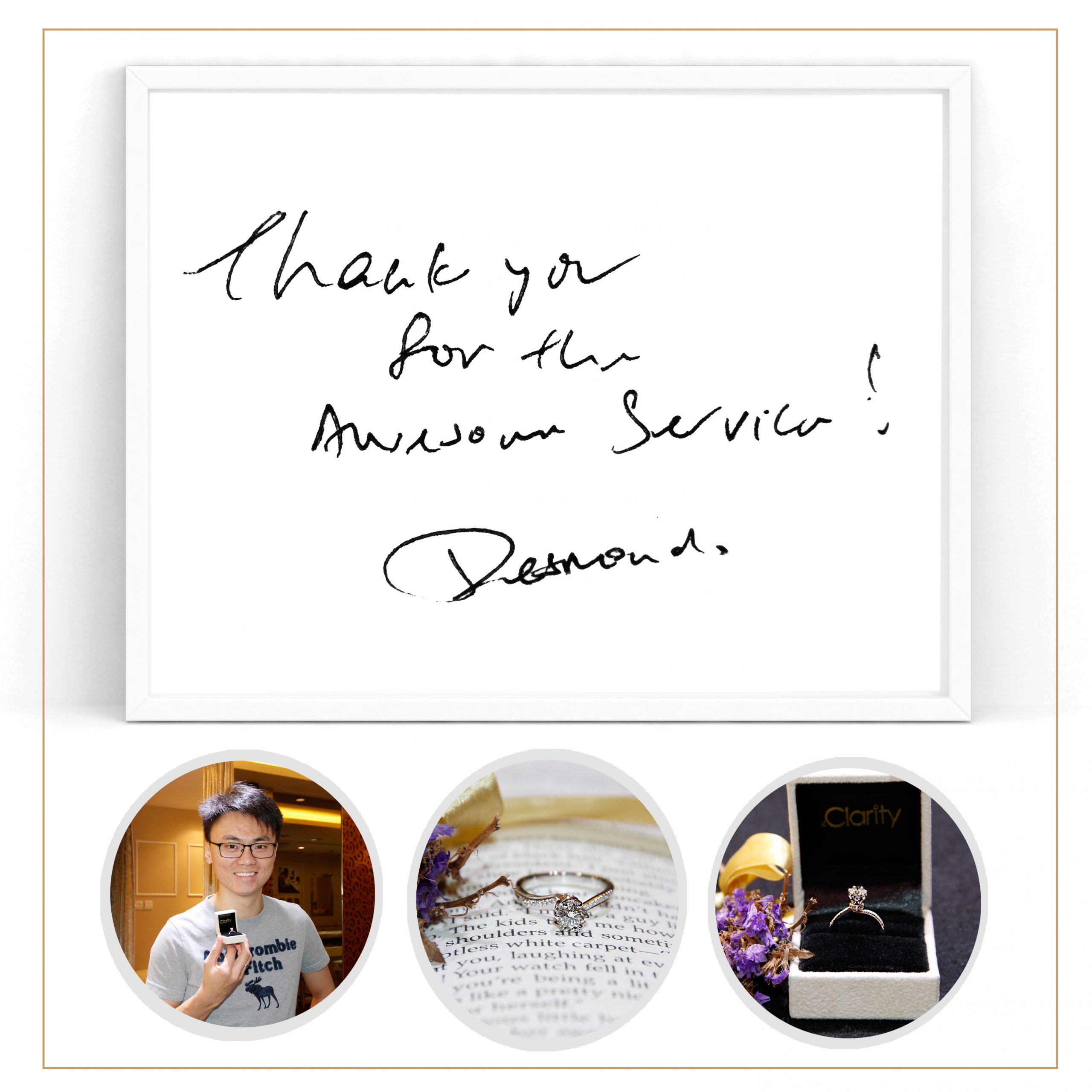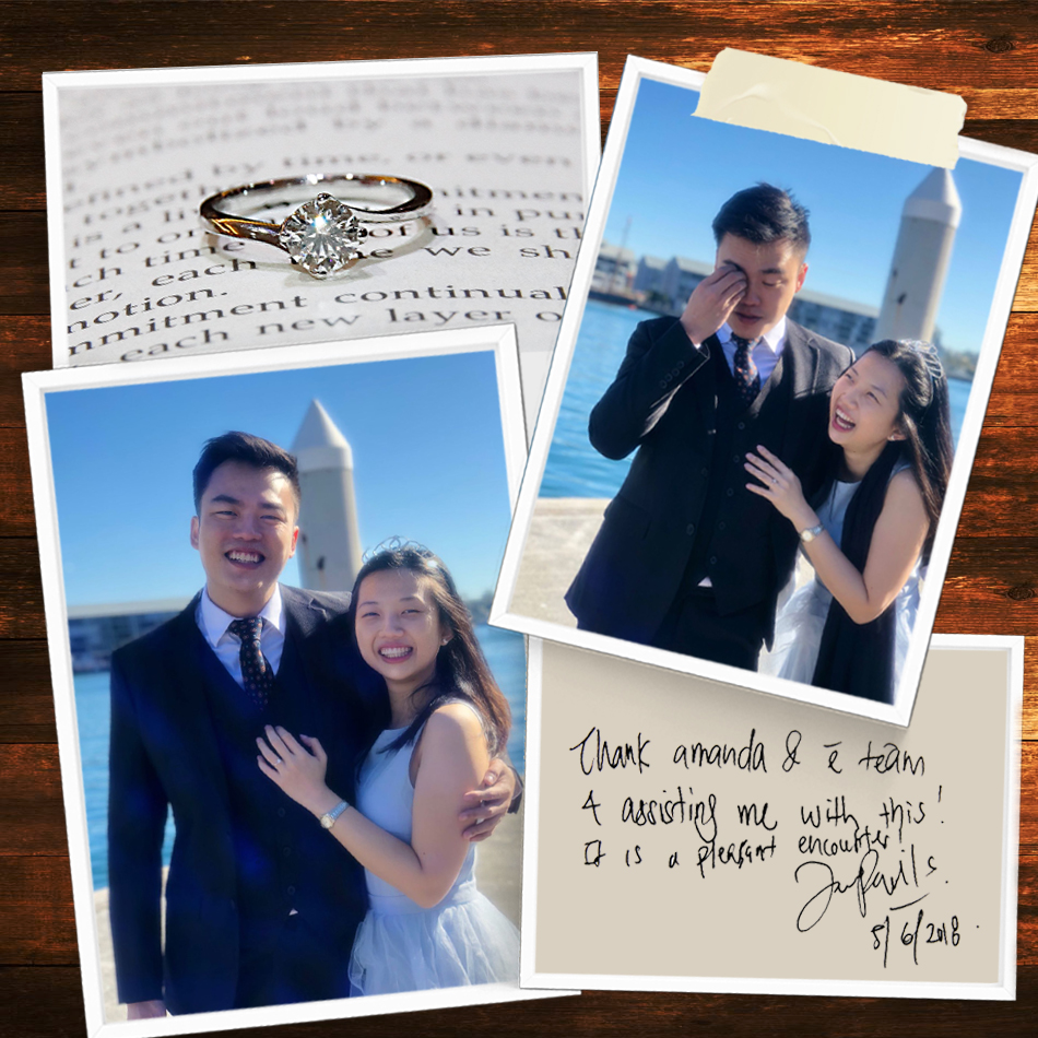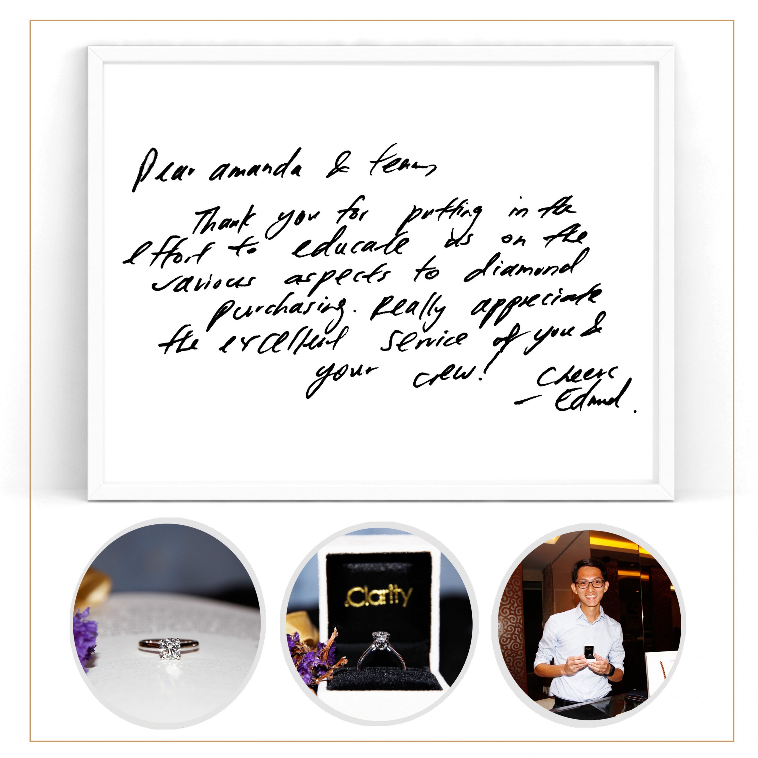 “Dear Amanda & team, thank you for putting in the effort to educate us on the various aspects to diamond purchasing. Really appreciate the excellent service of you & your crew!” – Cheers, Edmund