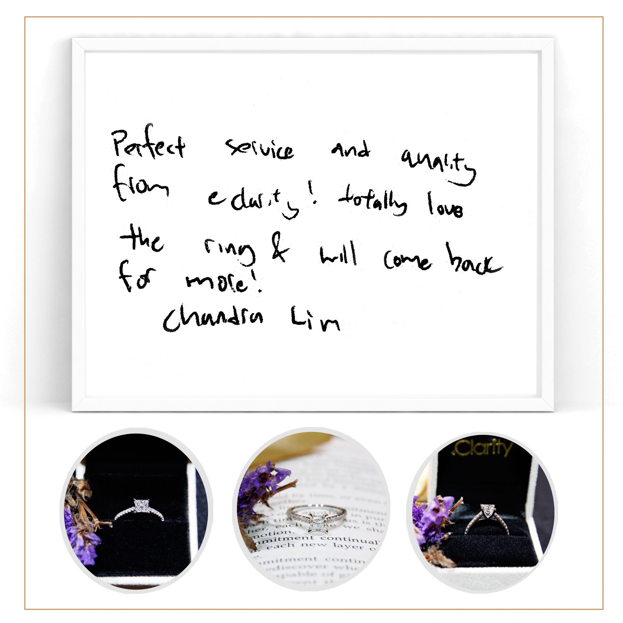“Perfect service and quality from eClarity! Totally love the ring & will come back for more!” – Chandra Lim