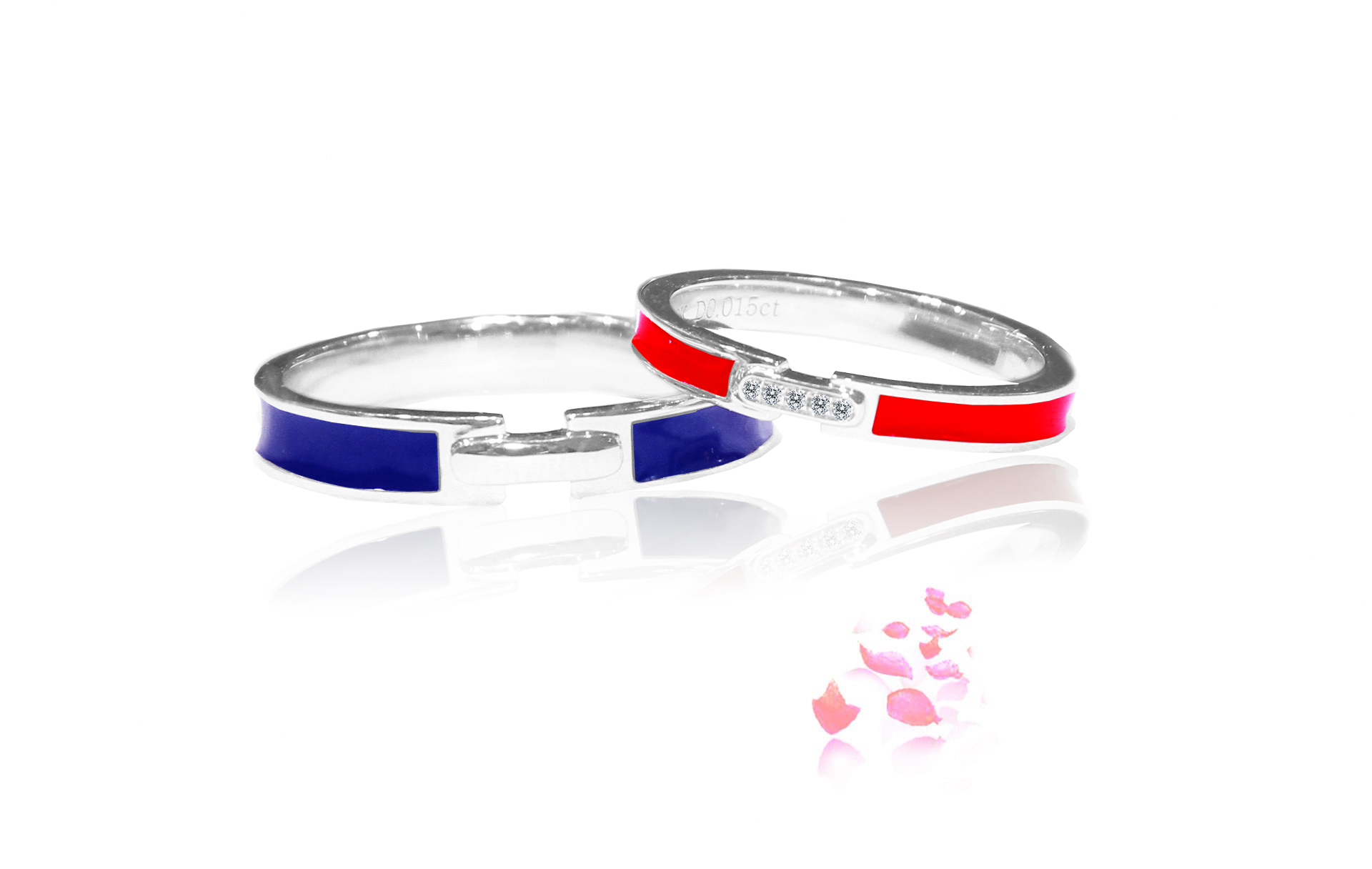 Inner enamels. Adding blue and red enamel vivifies a pair of bespoke wedding bands. Explore eClarity newest additions to the wedding bands collection. #eClarity #weddingbands