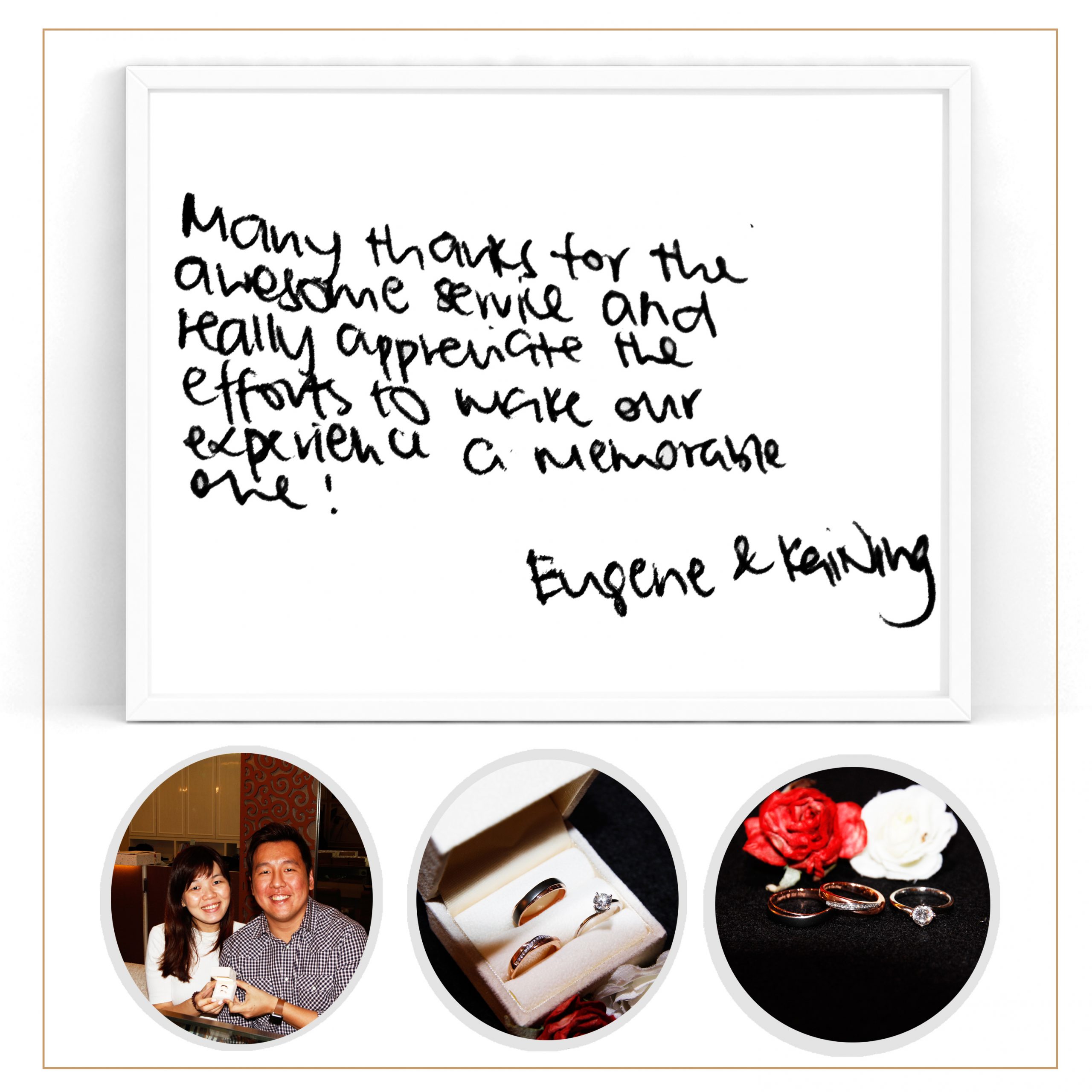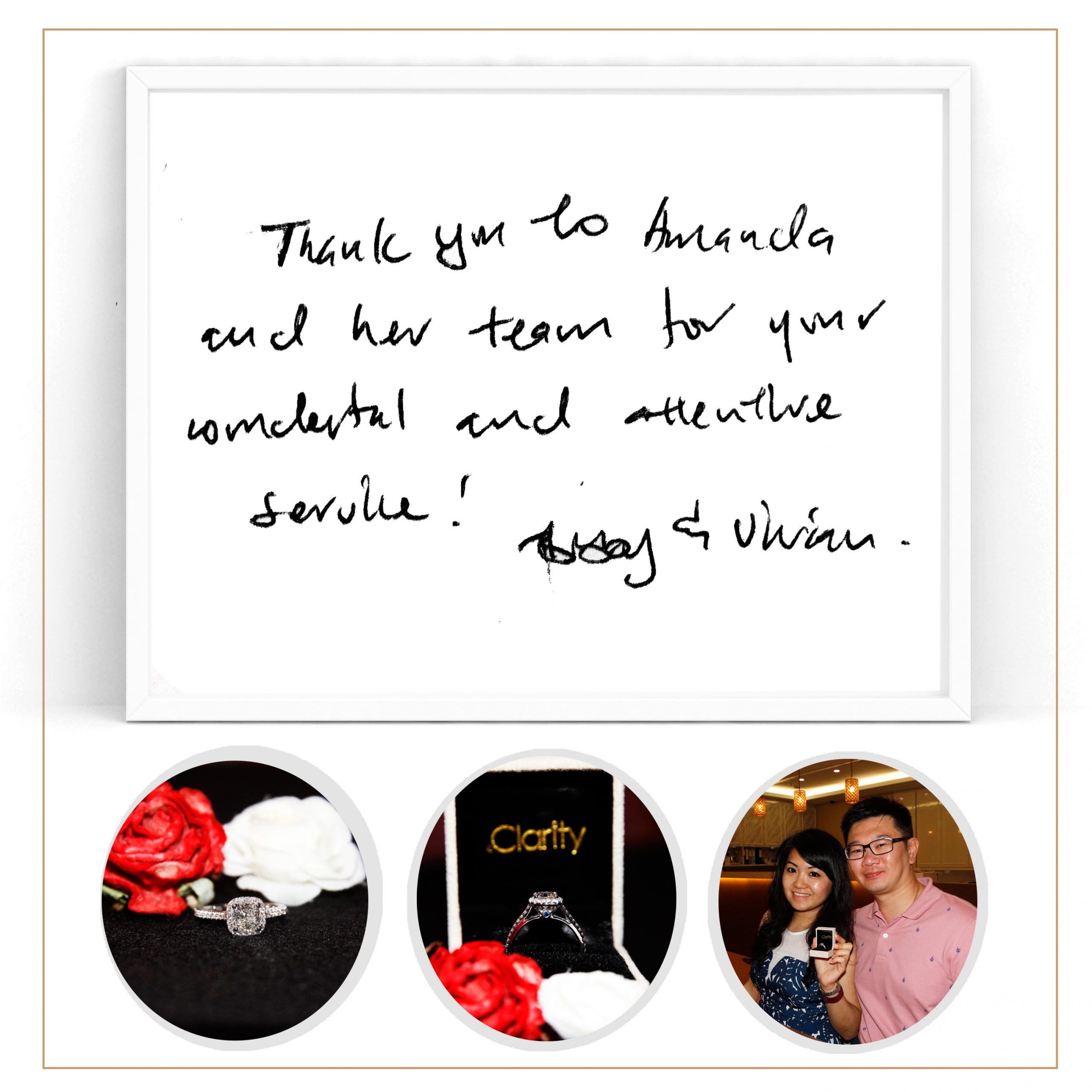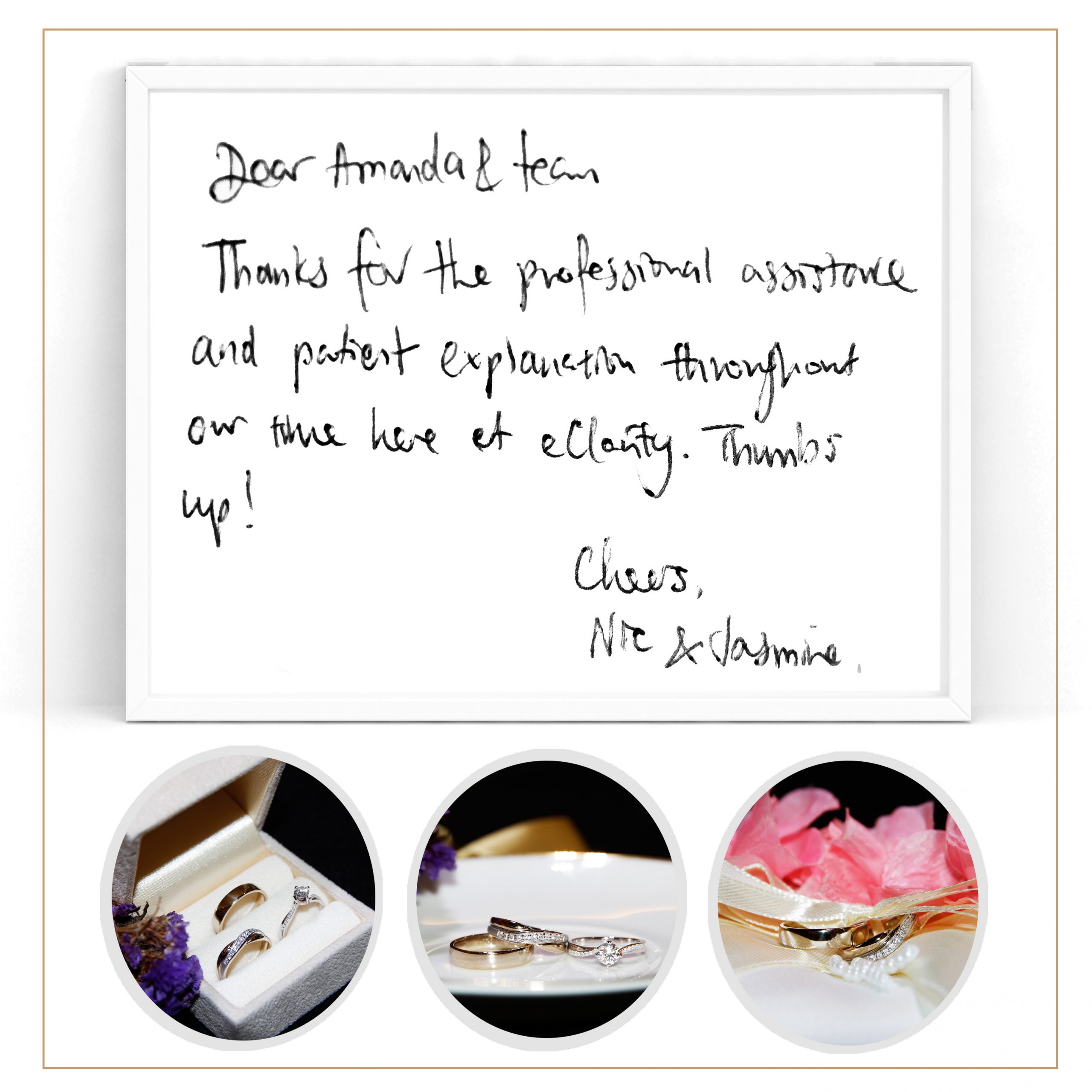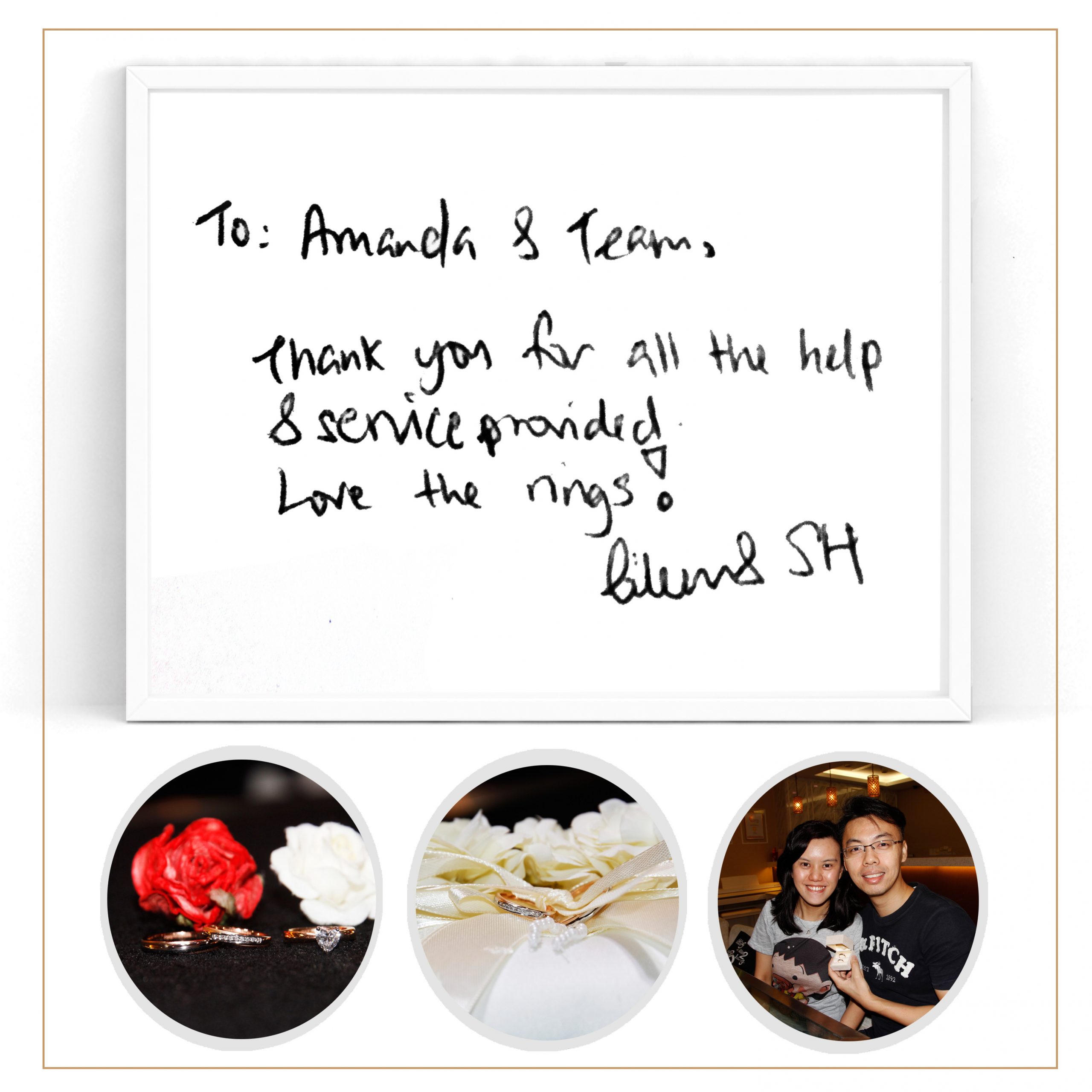 “To: Amanda & team, thank you for all the help & service provided. Love the rings!” – Eileen & SH
