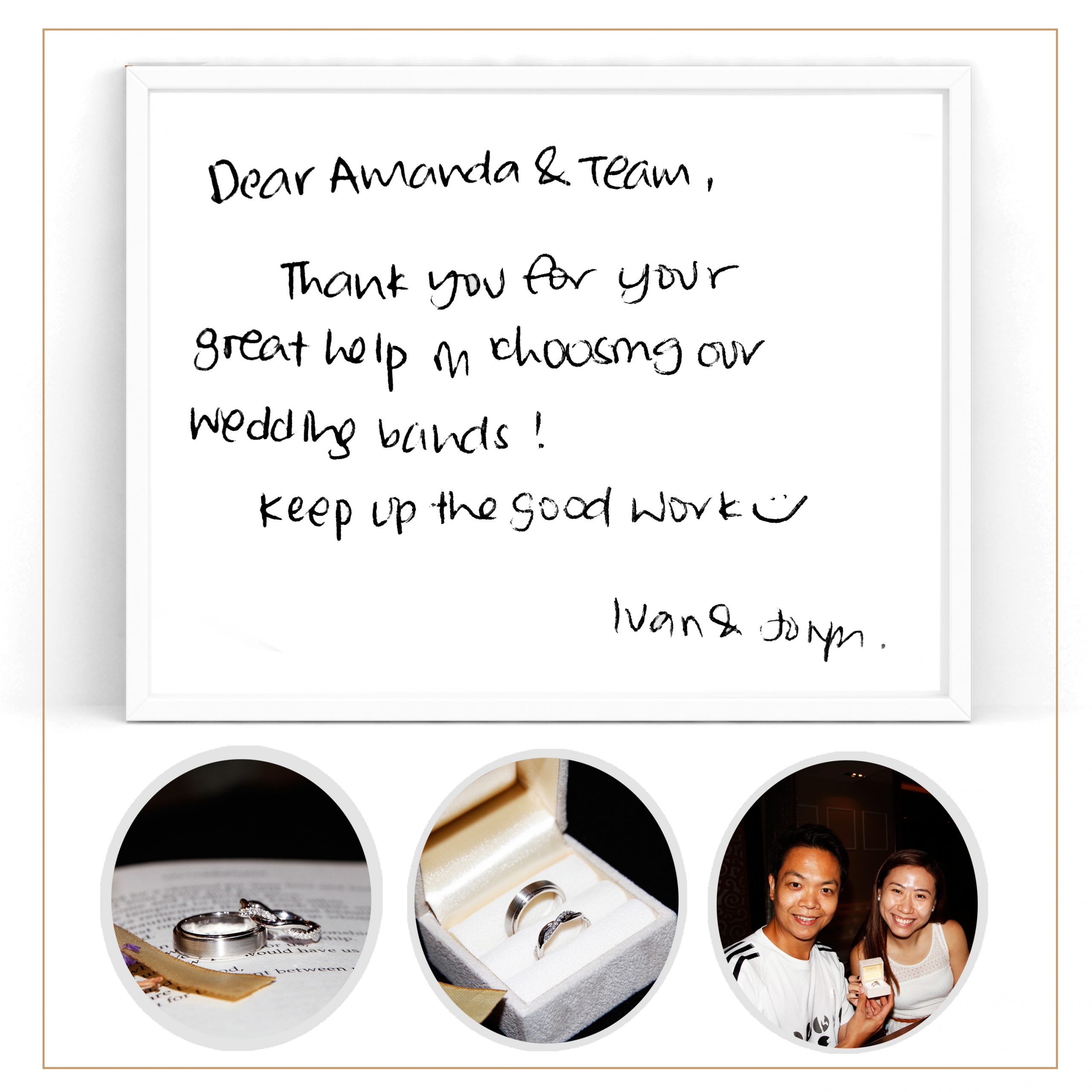 “Dear Amanda & team, thank you for your great help in choosing our wedding bands! Keep up the good work ?” – Ivan & Jolyn
