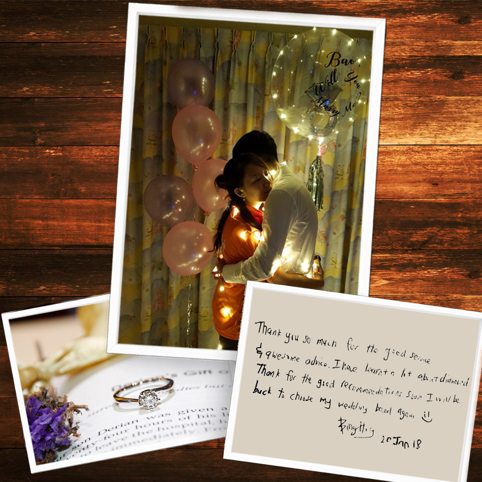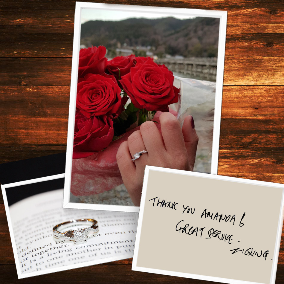 “Thank you so much for the good service & awesome advice. I have learnt a lot about diamond. Thanks for the good recommendations. Soon I will be back to choose my wedding bands again ?” – Bing Hong
