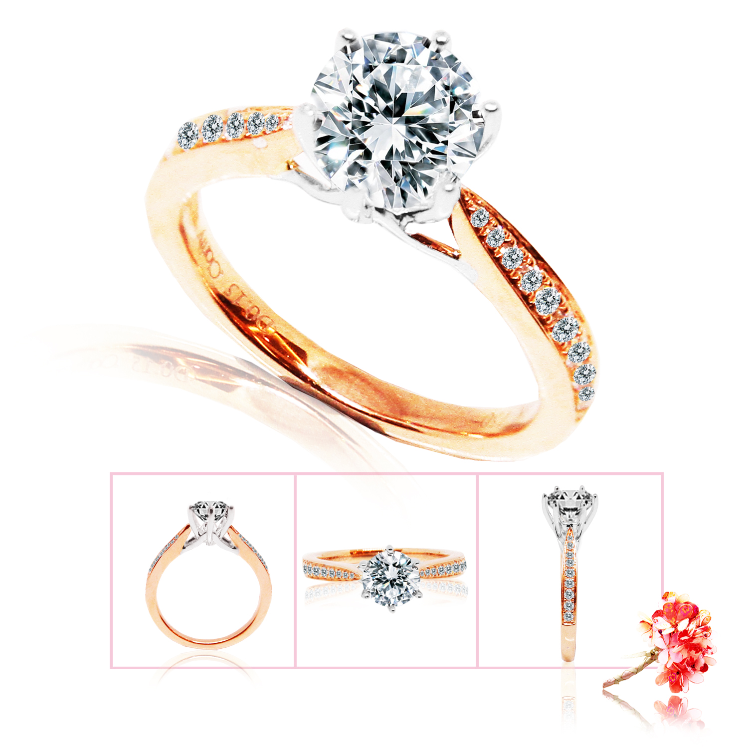 Part of the timeless series found in the eClarity Classic Collection, this ring setting features rose gold mounted with diamonds, tapering towards the middle diamond. The color contrast between the prongs holding the main diamond and the side ring shanks, creates a gentle highlight – an embodiment of eClarity’s commitment to details and exquisiteness. #eClarity #diamond #ringsetting #shoplocalbrand