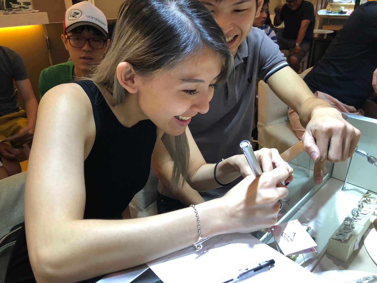 We hosted an unforgettable afternoon to celebrate Great Singapore Sale last Saturday at Ngee Ann City. Couples joined the celebration engraving on their own rings or pens, challenging themselves in differentiating and identifying trays of designs. GIA Gemologist Amanda was on-site to show sharing tips on customization.