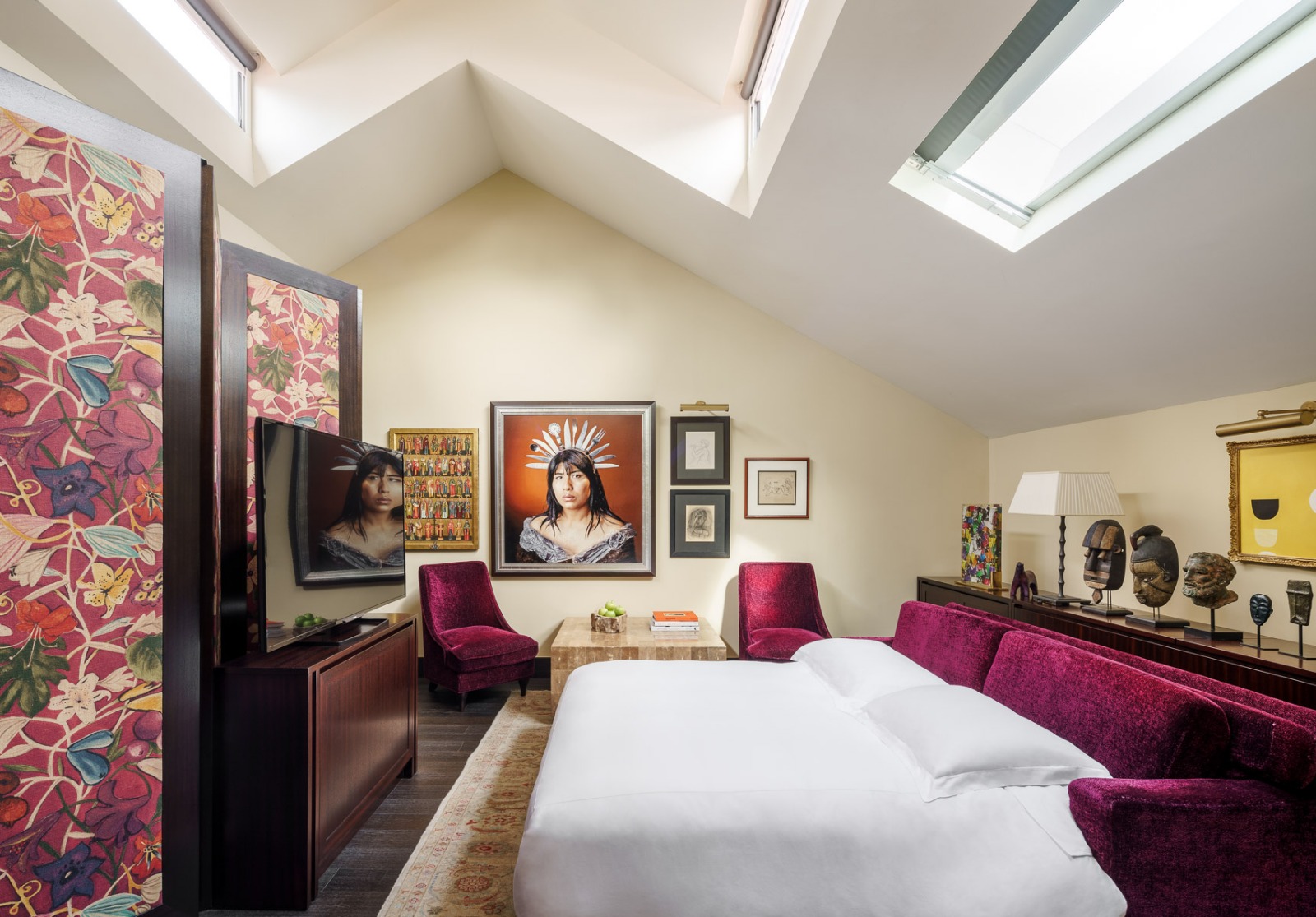 The rooms here are spacious, stylish and decorated with floral and nature-inspired art pieces.