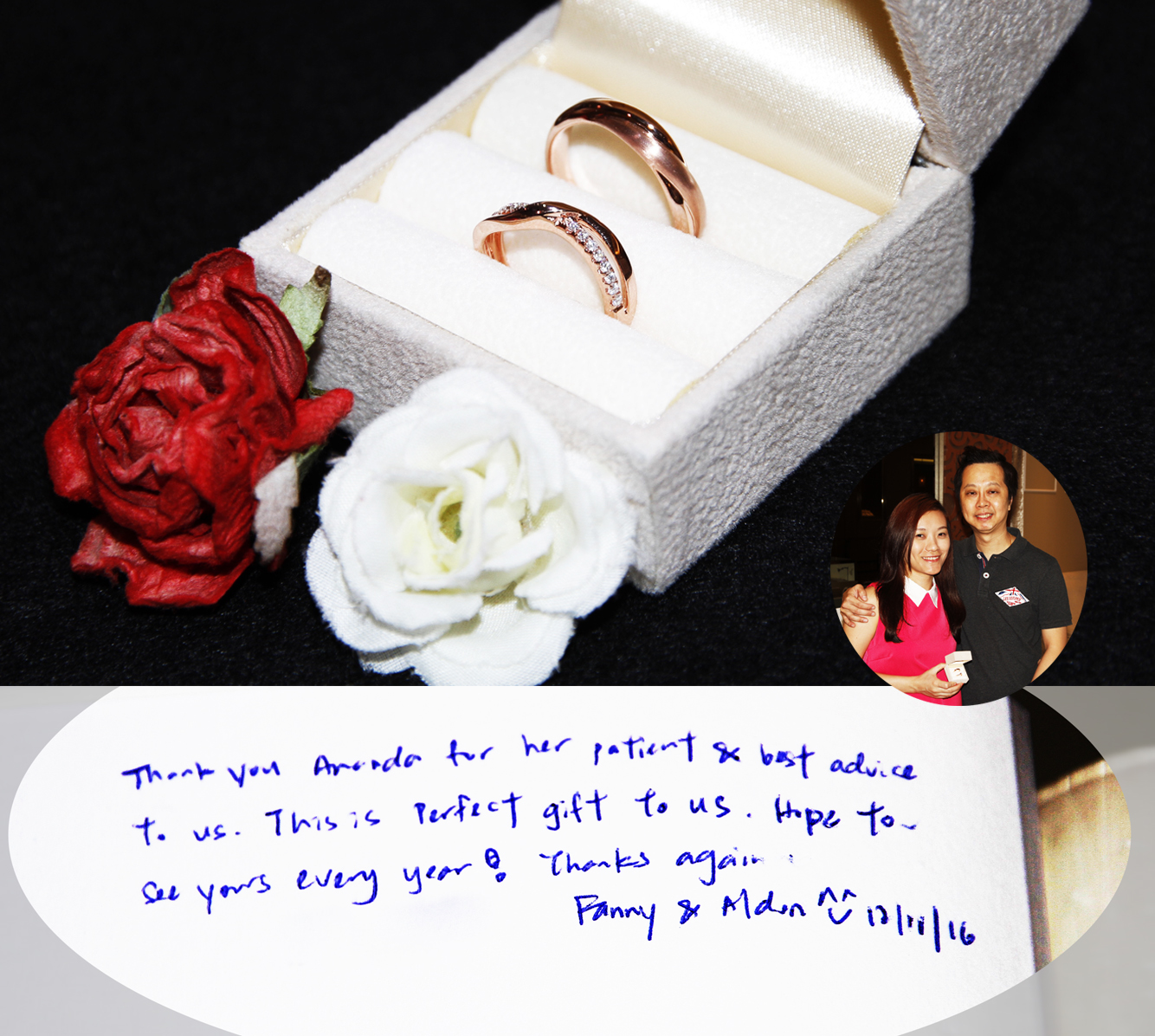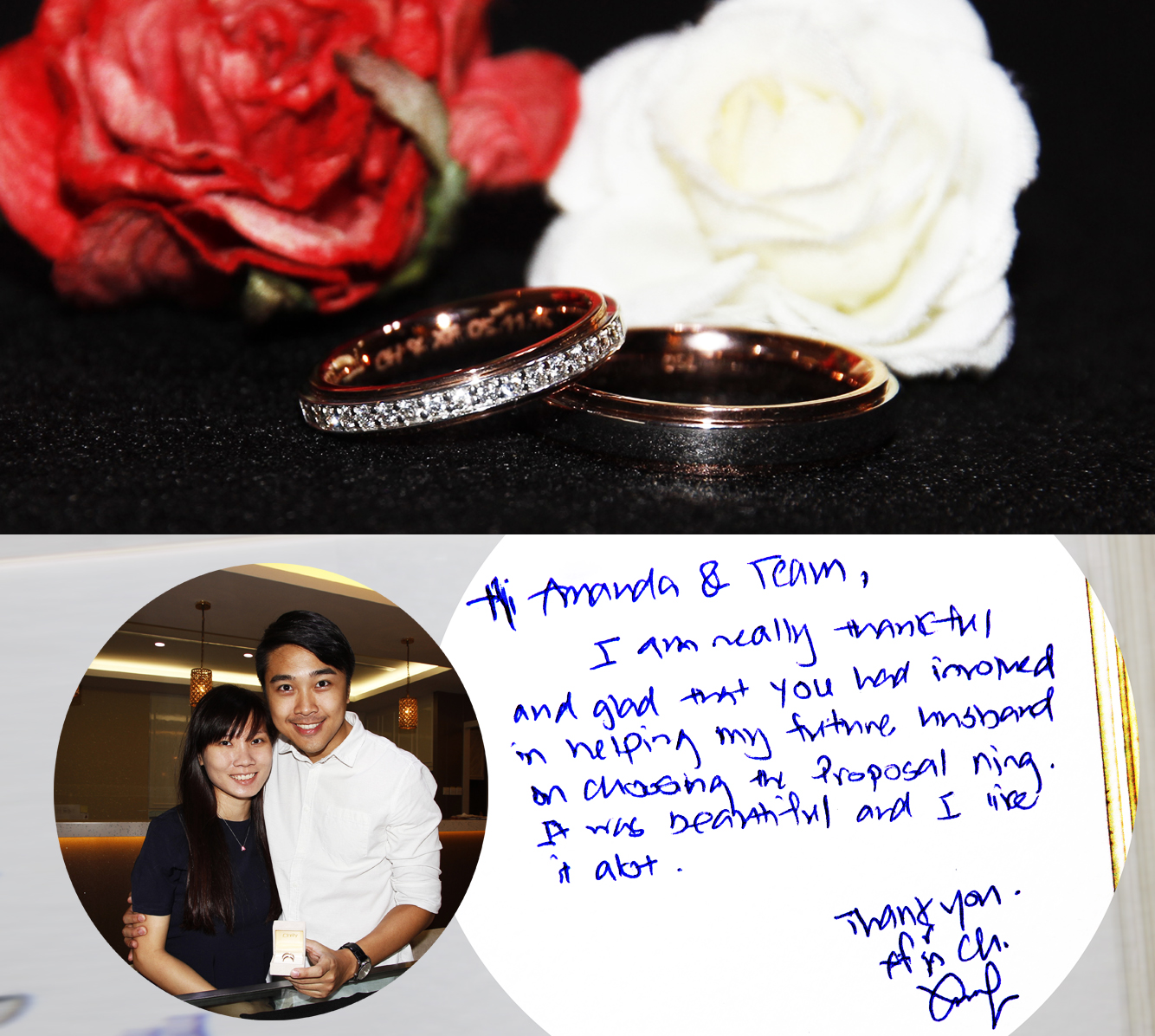 “Hi Amanda & Team, I am really thankful and glad that you had involved in helping my future husband on choosing the proposal ring. It was beautiful and I like it a lot.” – Thank you, Xiao Fen& Chu