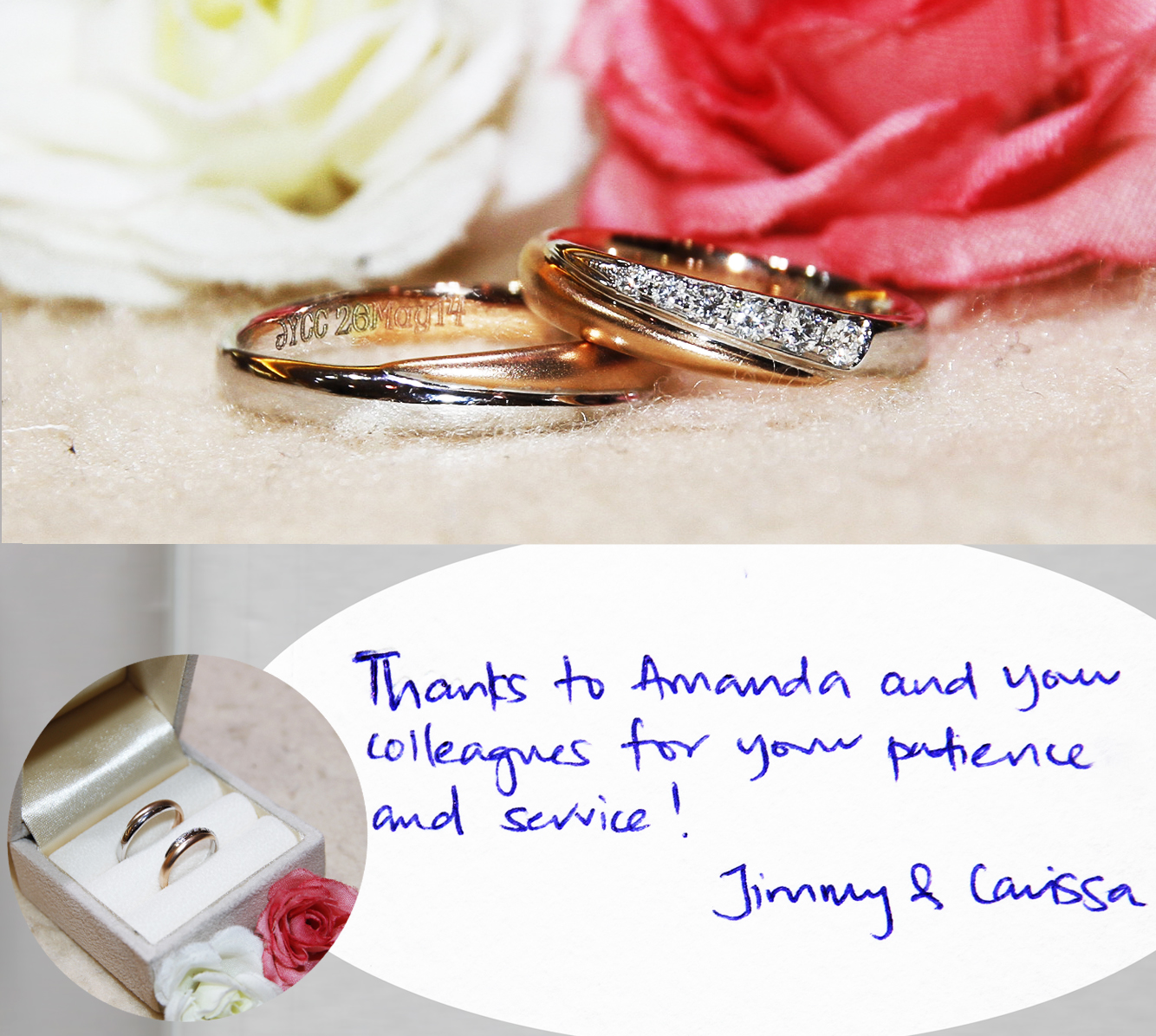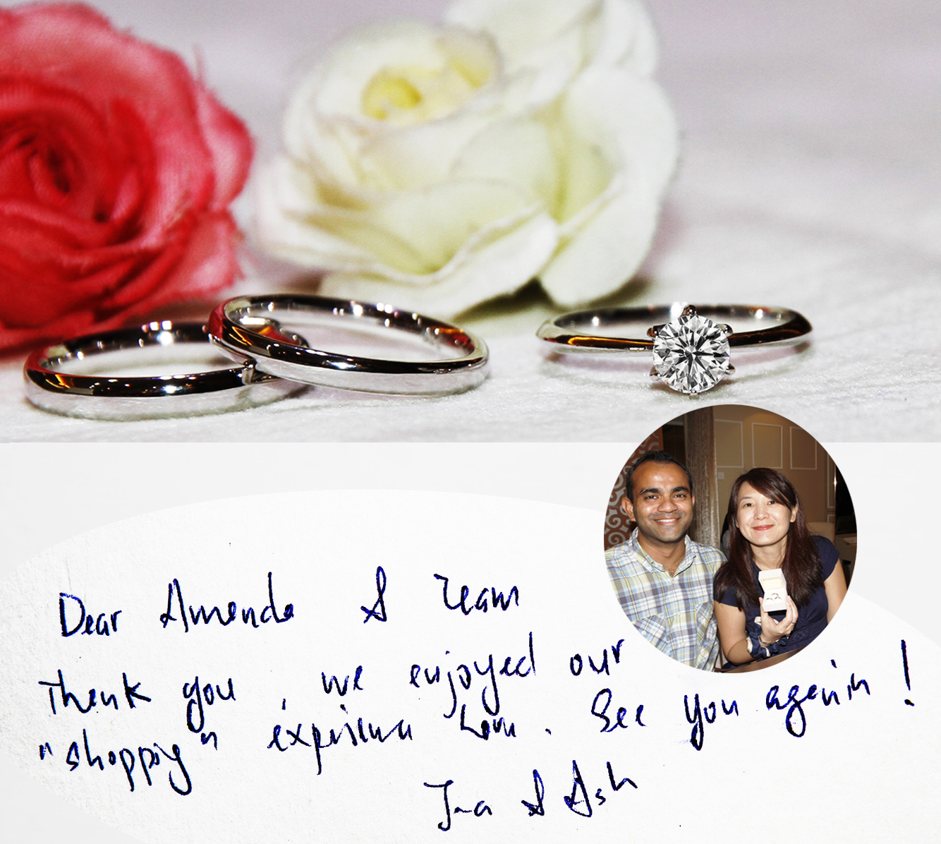 “Dear Amanda & team, Thank U so much for the wonderful rings! Super Luv them!”- with love, Victor & Von Yea