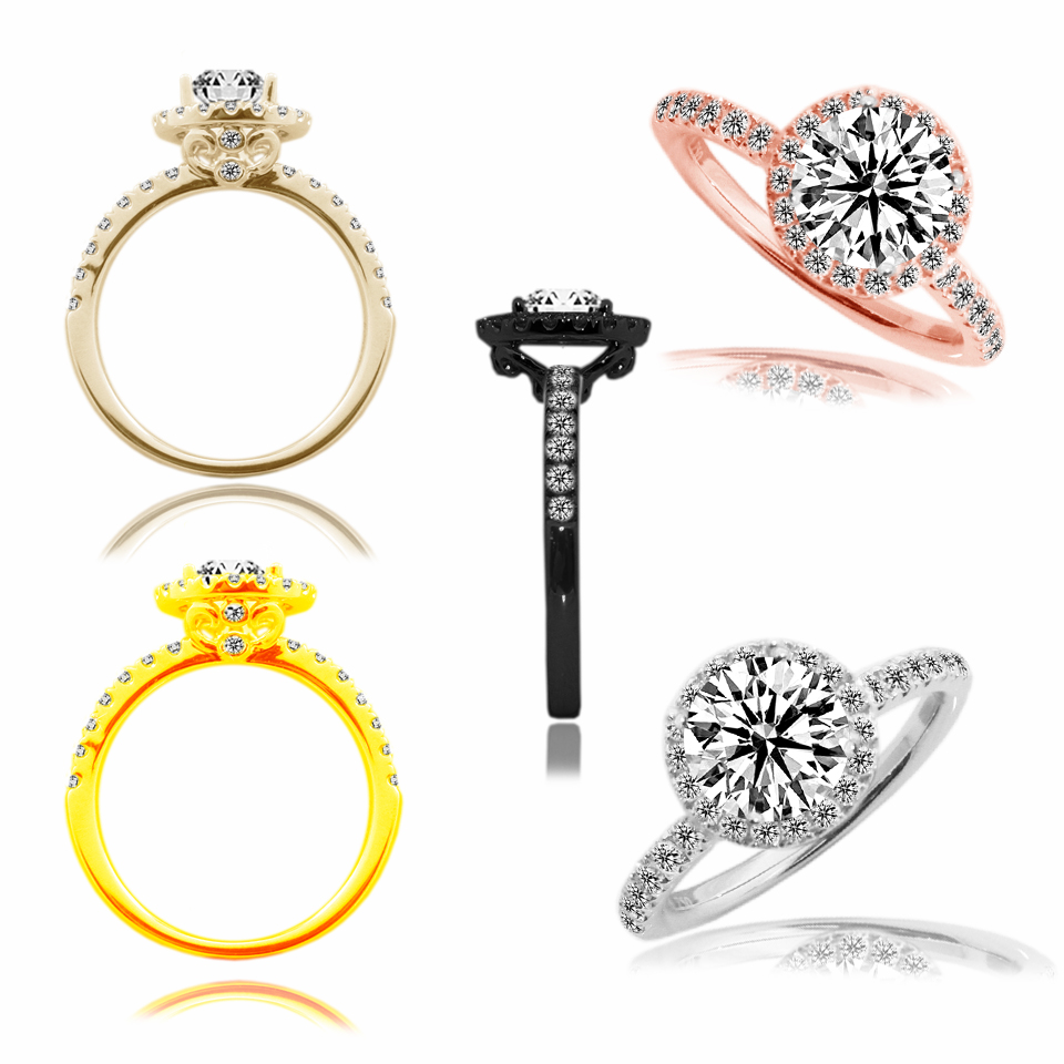 eClarity extravagant halo ring setting, scintillating with 36 round brilliant diamonds 0.5 carat in 18k gold, white, rose, yellow, champagne and black, gloss. (RCX 459)