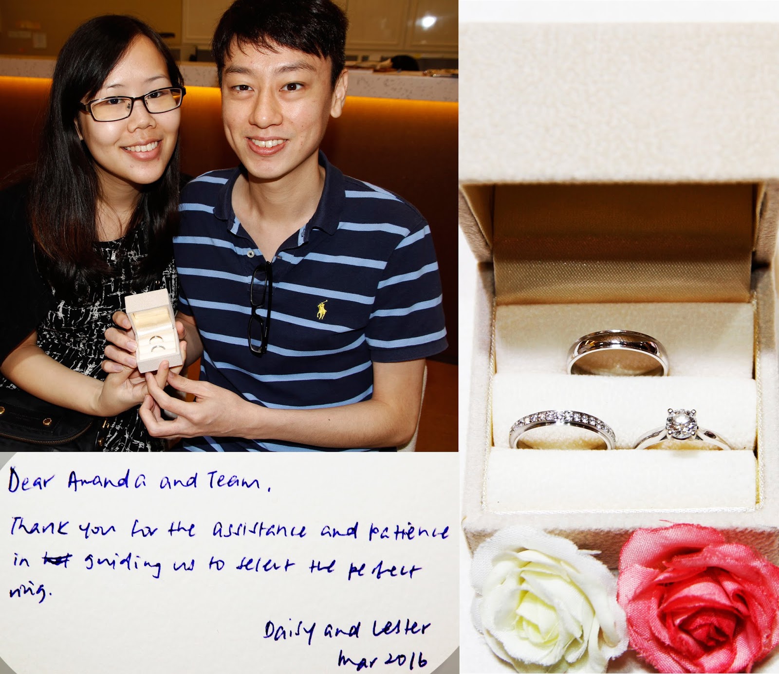 “Dear Amanda and team, thank you for the assistance and patience in guiding us to select the perfect ring.” – Daisy & Lester