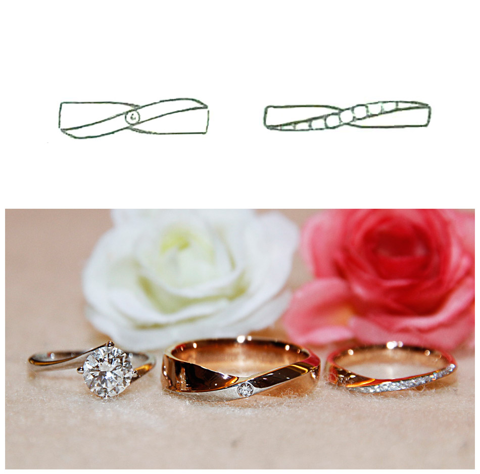 Inspired by the ups and downs of waves, similarly in life, this pair of wedding bands resembles the peak and troughs that the couple have experienced, and the new journey that they are about to embark on together. We specifically designed the waves in 18k white gold with diamond matte finishing, to highlight it against the backdrop of 18k rose gold with gloss finishing. To add a touch of femininity, 66 round brilliant diamonds 0.22 carat were added to the waves.