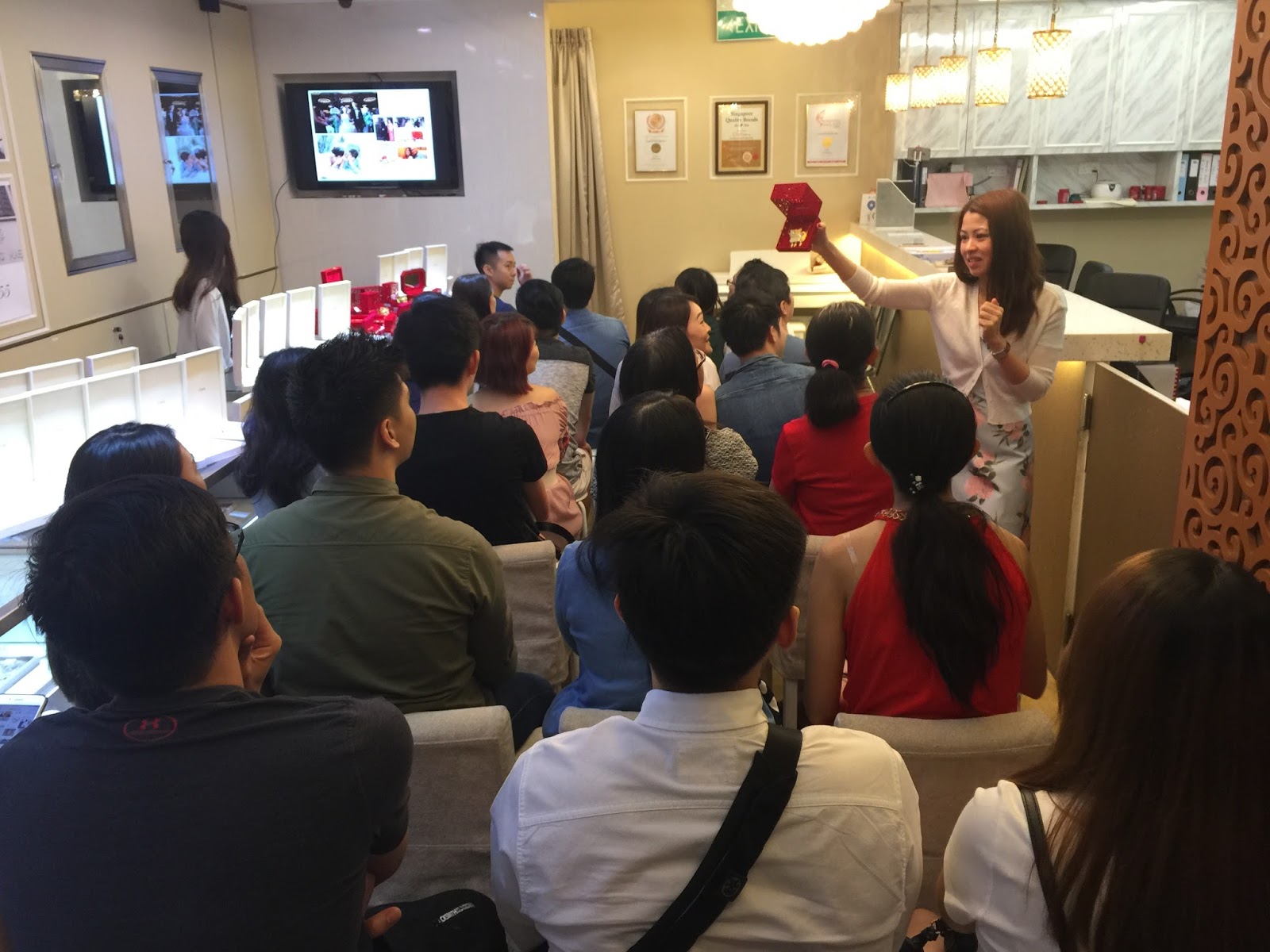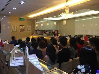Our Gemologist Amanda presented her very first talk on bridal jewellery, covering the origin and tradition四点金 (Si Dian Jin) of different dialects, yellow gold contents, pearls, diamonds, gemstones, and customization options. It was an afternoon filled with information, laughter, activities and fun! It ended with a demonstration and closed-door sale.
