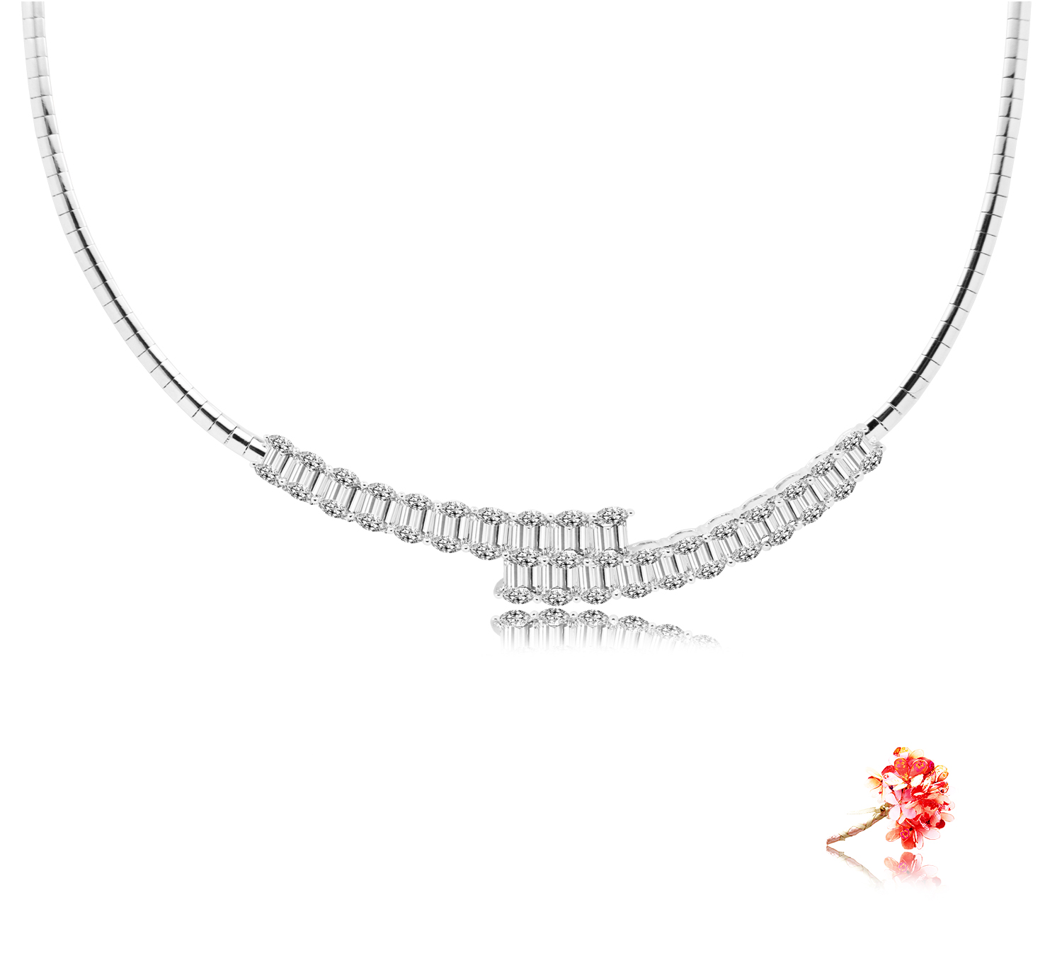 #Diamond necklace with 38 pcs of marquise and tapered cut diamonds 3.89 carat, in 18k white gold (N00012)