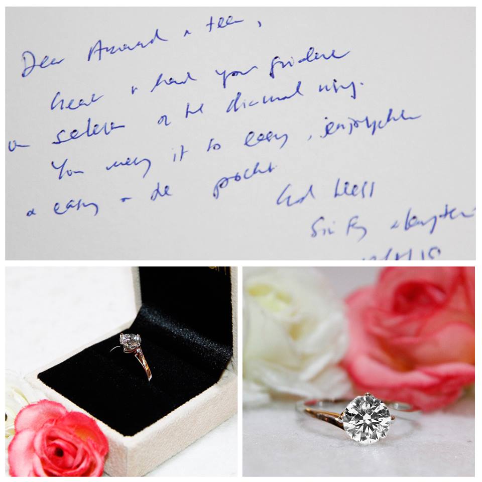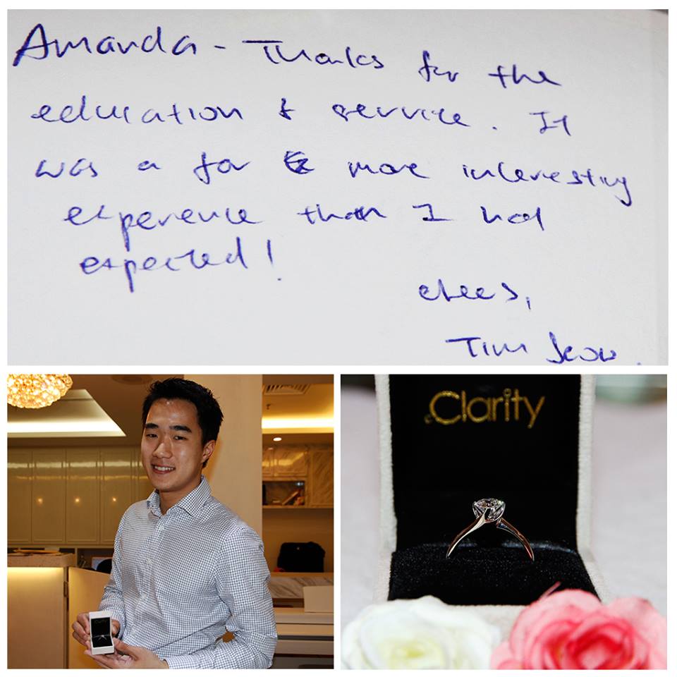 “Dear Amanda, thanks for spending time and effort to explain and help select the #perfectring for my wife to be. Wish you all the best in your business & Miss Singapore.” – Nathaniel