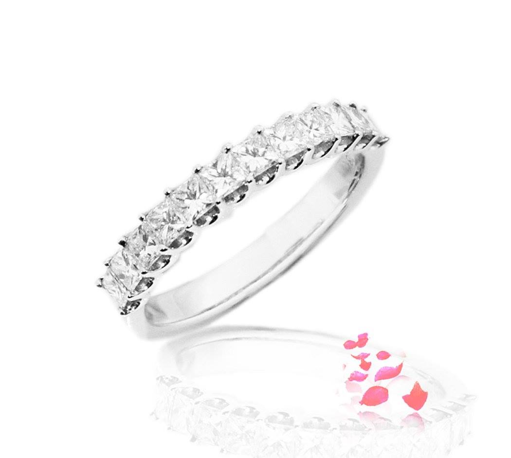 Diamond ring scintillating with 12 princess cut diamonds 1.02 carat in 18k gold, white. (RETN539)
