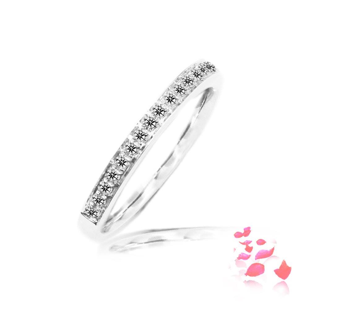 Diamond ring scintillating with 18 tappered diamonds 0.51 carat in 18k gold, white. (R00058)