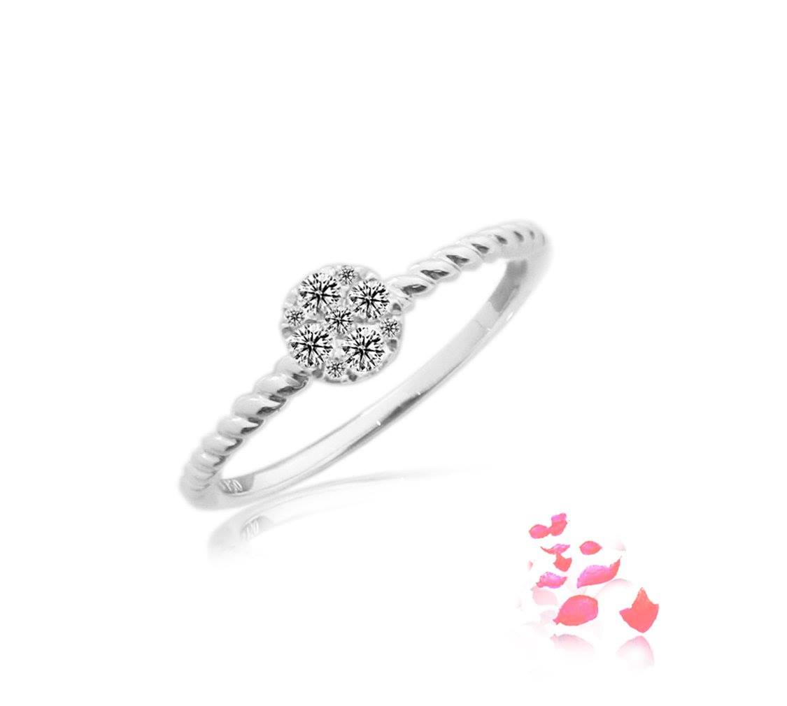 Diamond ring scintillating with 9 round brilliant diamonds 0.16 carat in 18k gold, white. (RCLT551-1)