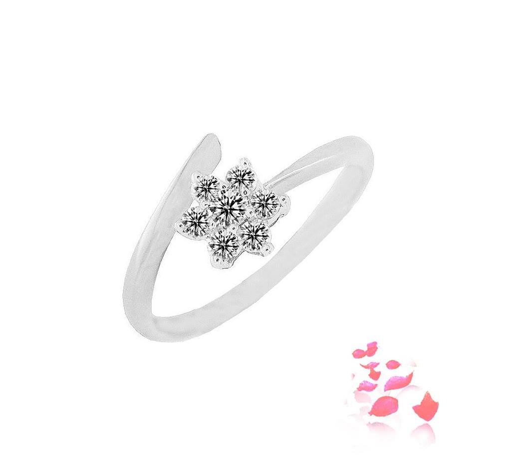 Diamond ring scintillating with 1 round brilliant diamonds 0.059 carat and 6 round brilliant diamonds 0.159 carat in 18k gold, white. (R00415a)