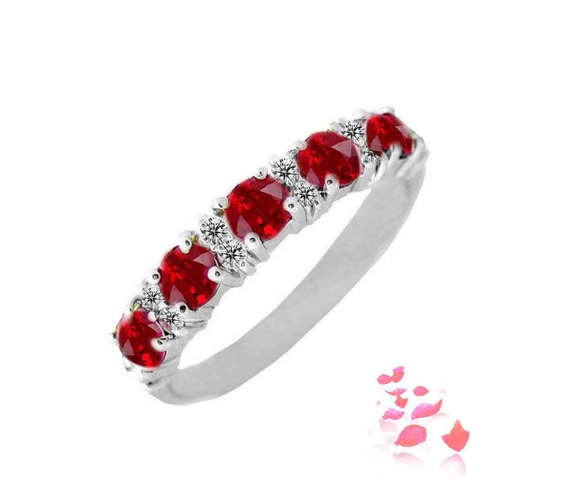 #Diamondring scintillating with 5 #ruby 0.82 carat and 12 round brilliant diamonds 0.12 carat in 18k gold, white. (R00209n)