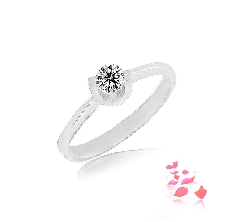 Diamond ring scintillating with 1 round brilliant diamonds 0.168 carat in 18k gold, white. (R00200a)