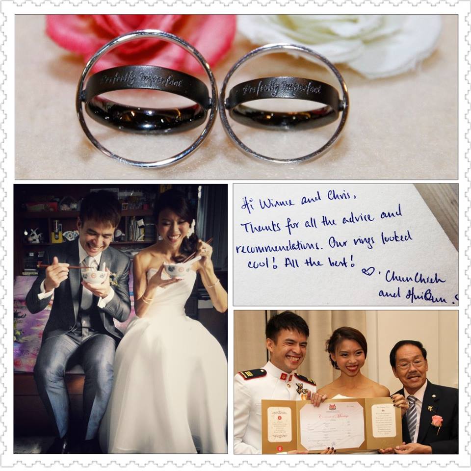 “Hi Winnie and Chris, thanks for all the advice and recommendations. Our rings looked cool! All the best!” – Chun Chieh & Hui Qun