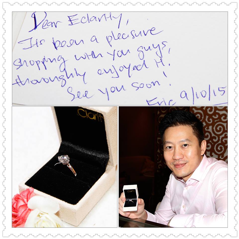“Dear Amanda, thanks for the patience to let me understand about diamond and make the sale so wonderful. Thank you so much!” – Ee Qing