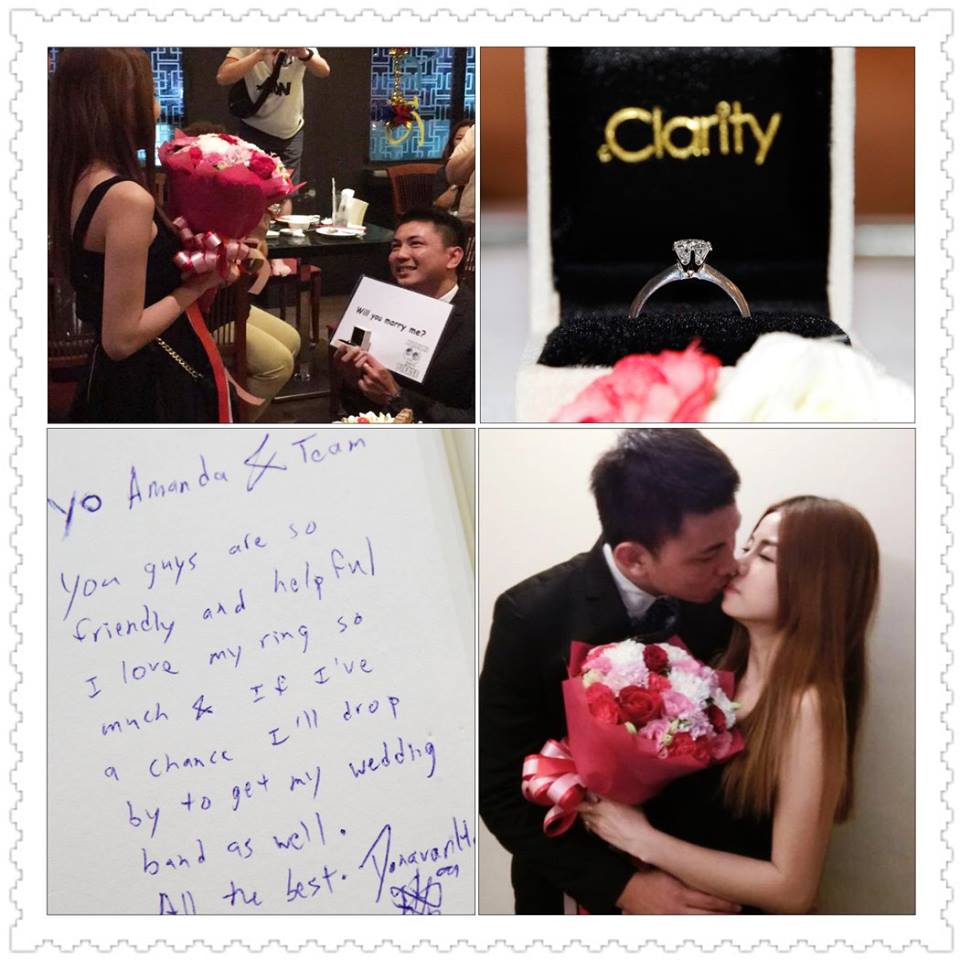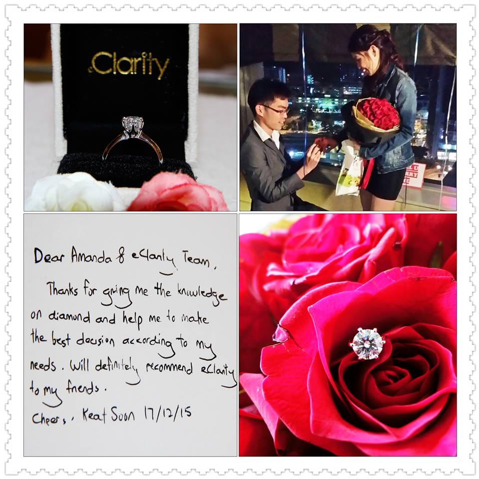 “Thank you #eClarityAmanda & team, came in, know nuts about #diamond. After the session, get to know more about it. With the service provided, surely able to get the girl of my dream to say YES! 🙂 Thank you all so much!” – Kevin