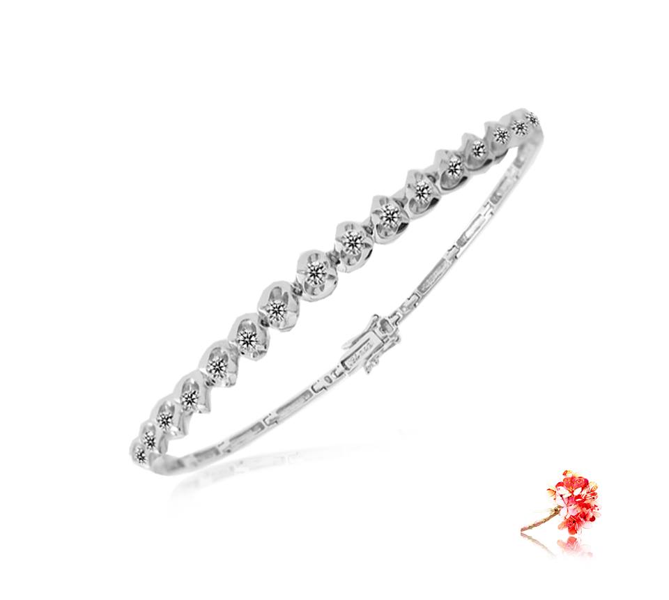 Diamond bangle scintillating with 24 round brilliant diamonds 0.665 carat in 18k gold, white. (BG00096)