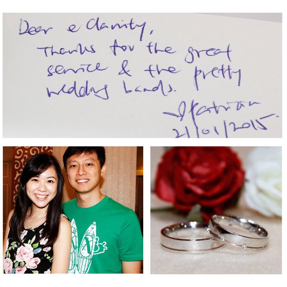 “Dear #eClarity, thanks for the #greatservice & the #pretty wedding bands. – Calvin & Patricia”
