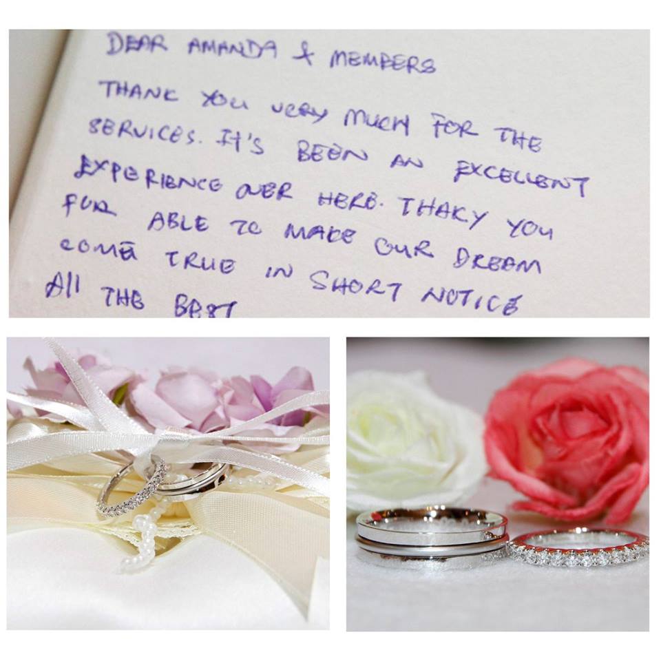 “Dear #Amanda & members, thank you very much for the #services. It’s been an excellent #experience over here. Thank you for able to make our dream come true in short notice. All the best. – Ji Xian & Emily”