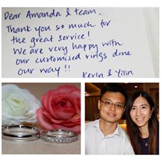 “Dear #Amanda & team, thank you so much for the great service! We are very happy with our #customizedrings done our way~!! – Kevin & Yilin”