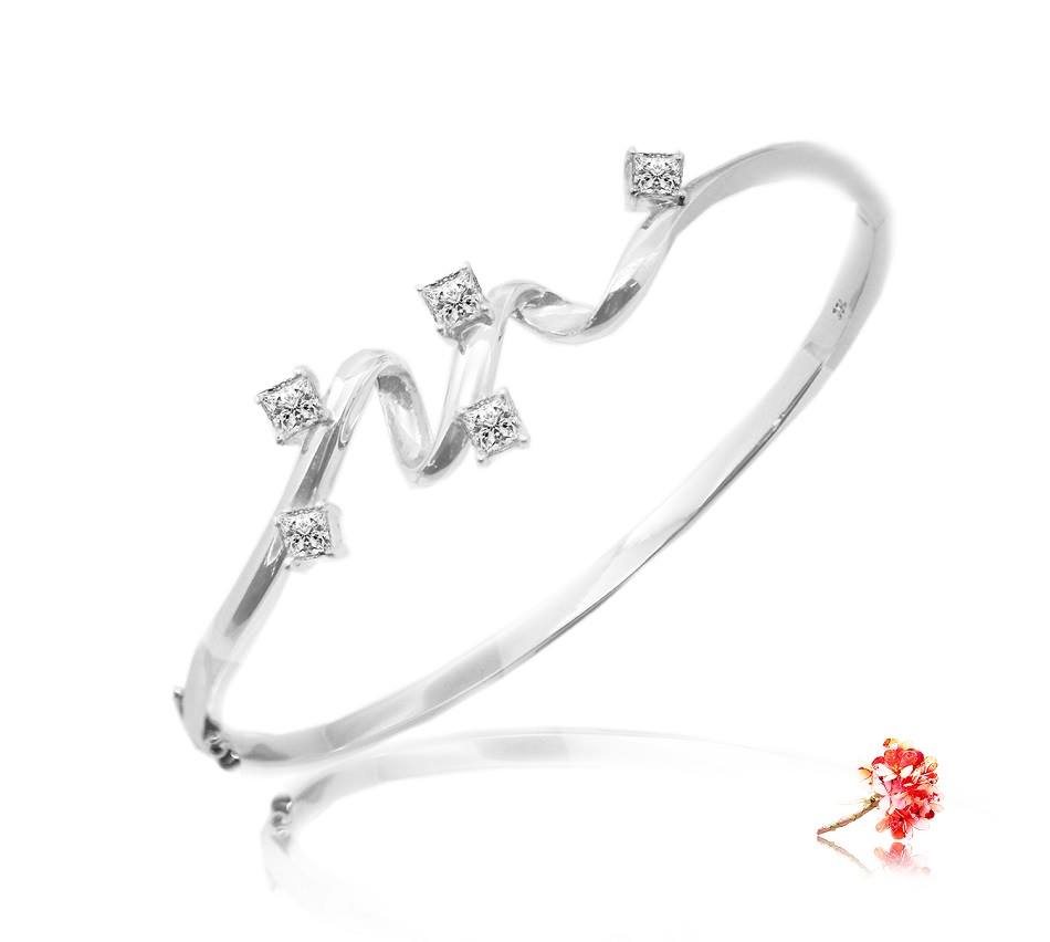 Diamond #bangle scintillating with 5 #princesscut diamonds 1.03 carat in 18k gold, white. (BG00003)