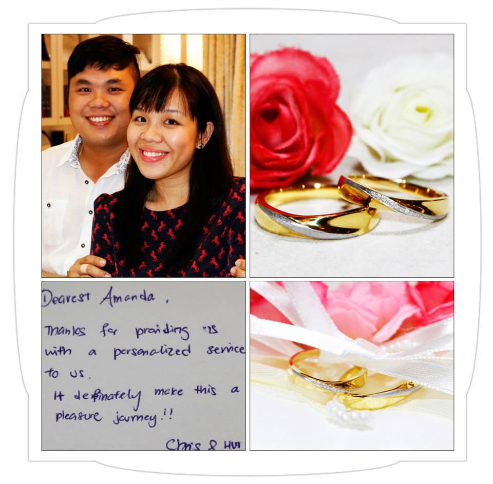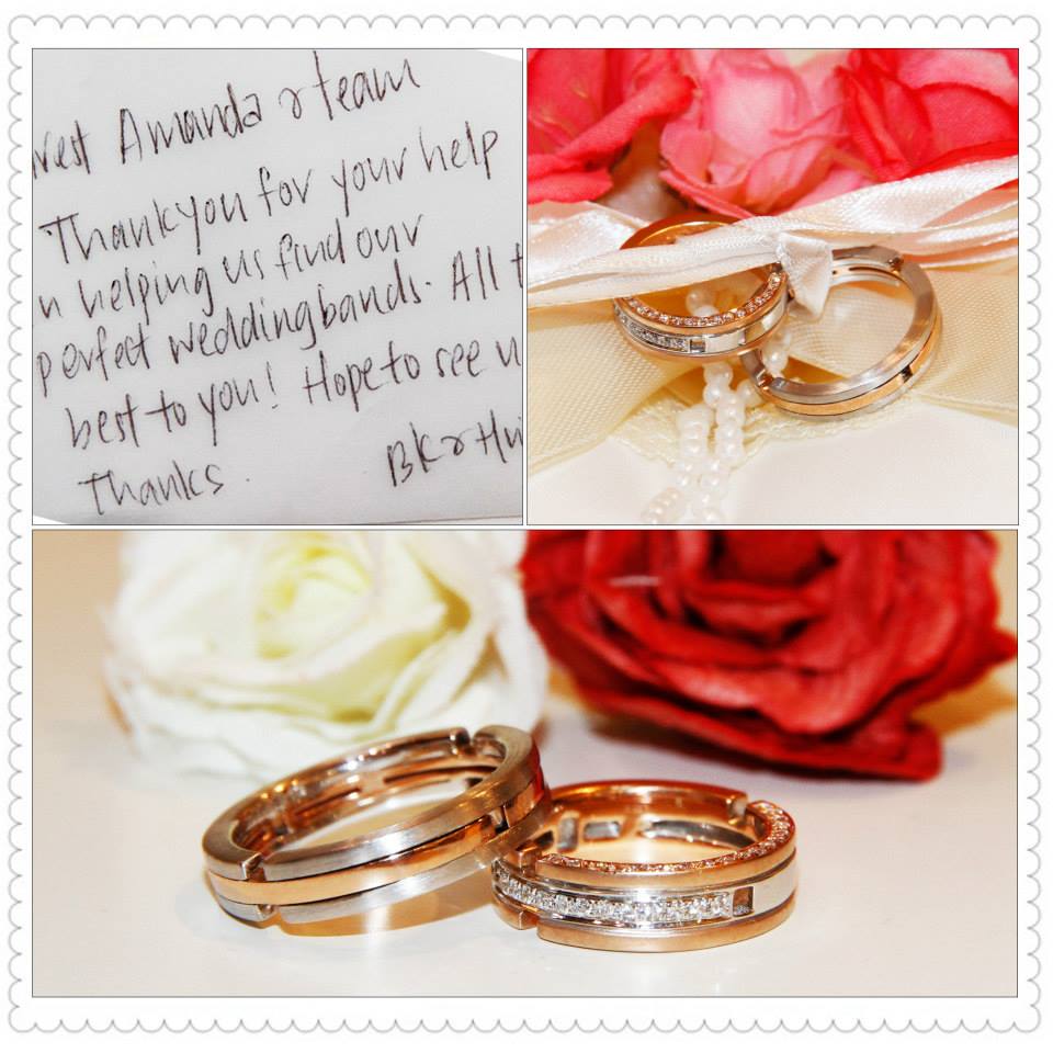 “Dear #Amanda, thank you for the personalized service, we love the rings” – Wei Quan & Xin Yi