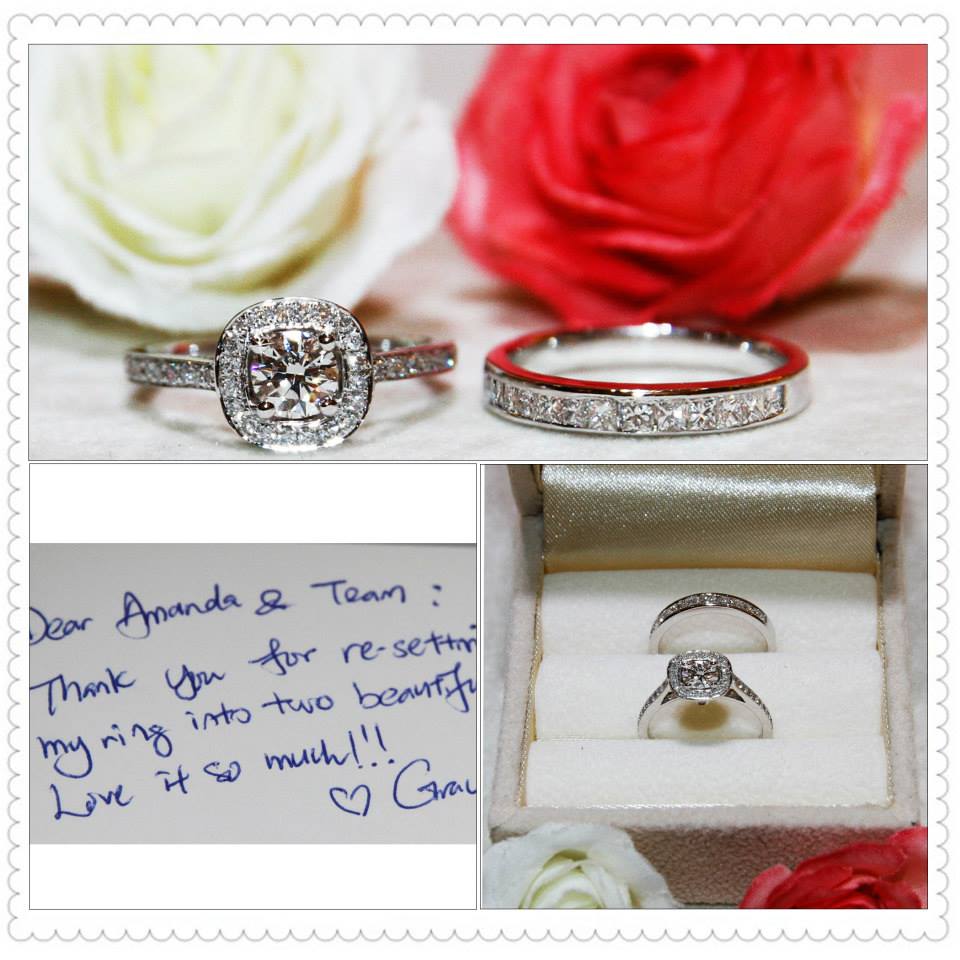 “Dear #Amanda & Team, thank you for re-setting my ring into two beautiful rings!! Love it so much!!” – Grace
