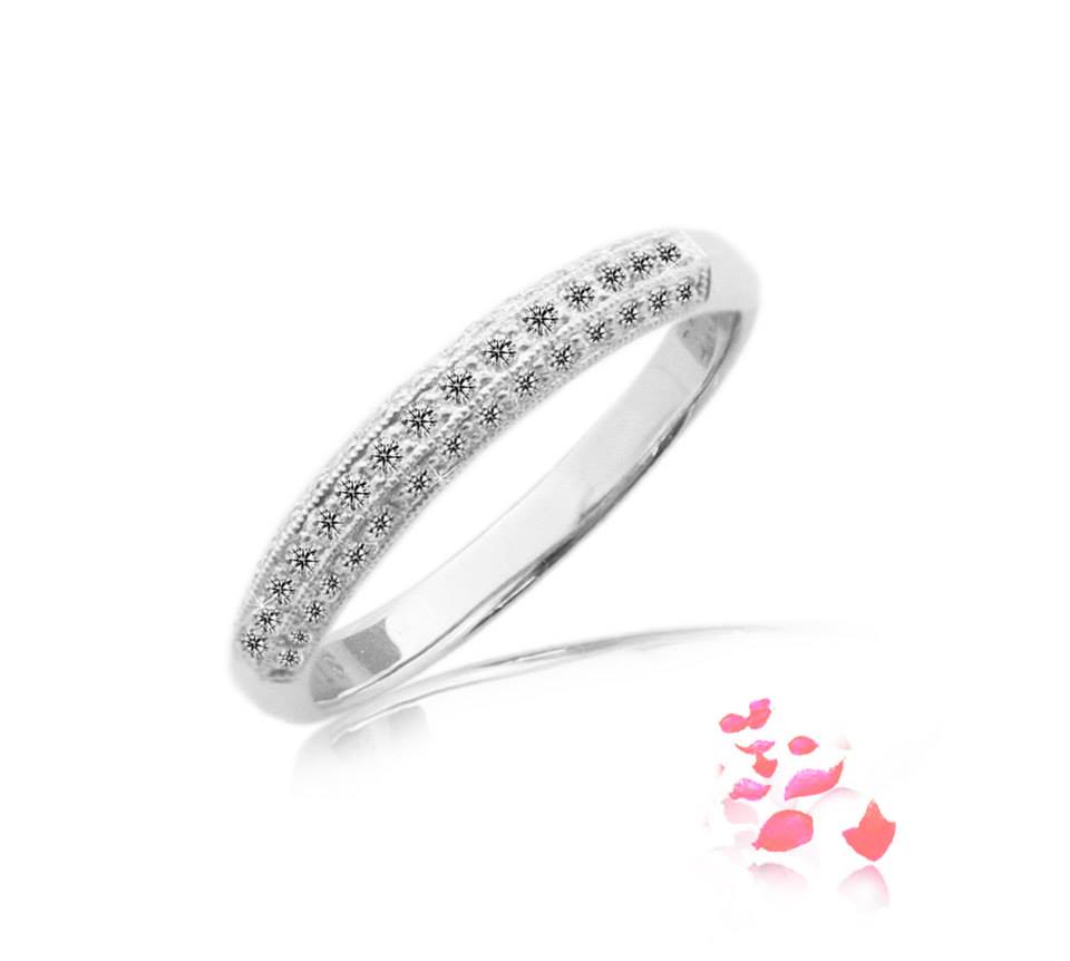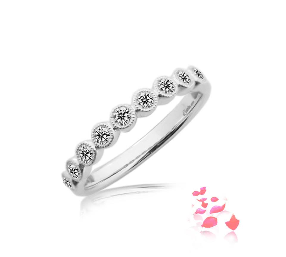 Diamond #ring scintillating with 25 round brilliant #diamonds 0.13 carat in 18k gold, white.