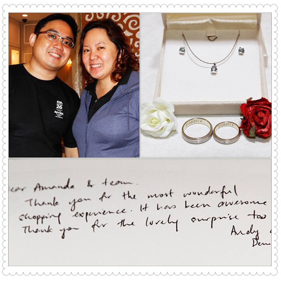 “Dear Amanda & Team, thank you for the most wonderful shopping experience. It has been awesome. Thank you for the lovely surprise too.” – Andy & Denise