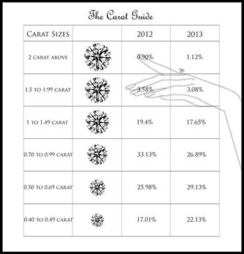Here’s the report showing diamond carat sizes sold at eClarity in year 2012 and 2013. We will be tabulating 2014 data, and will publish when it is ready, stay tuned!