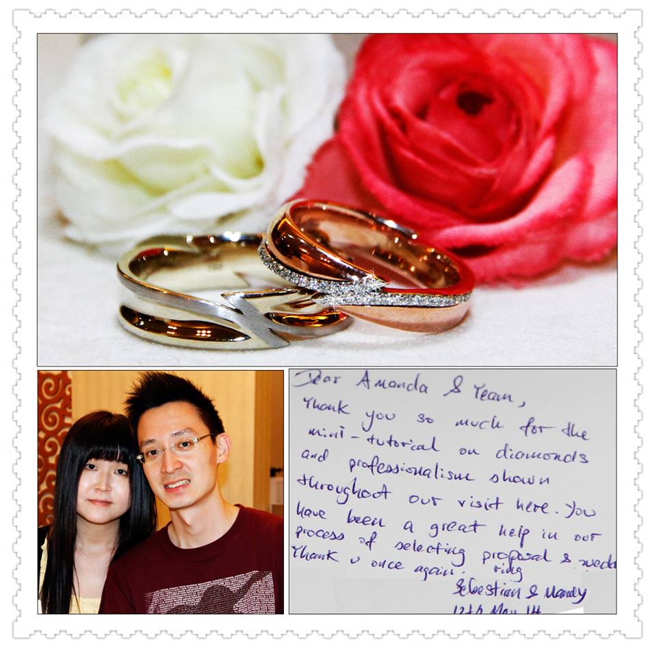 “Dear Amanda & team, thank you so much for the mini-tutorial on diamonds and professionalism shown throughout our visit here. You have been a great help in our process of selecting proposal ring & wedding bands. Thank you once again.” – Sebestian and Mandy