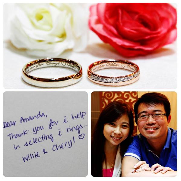 “Dear Amanda, Thank you for e help in selecting e rings.” – Willie & Cheryl