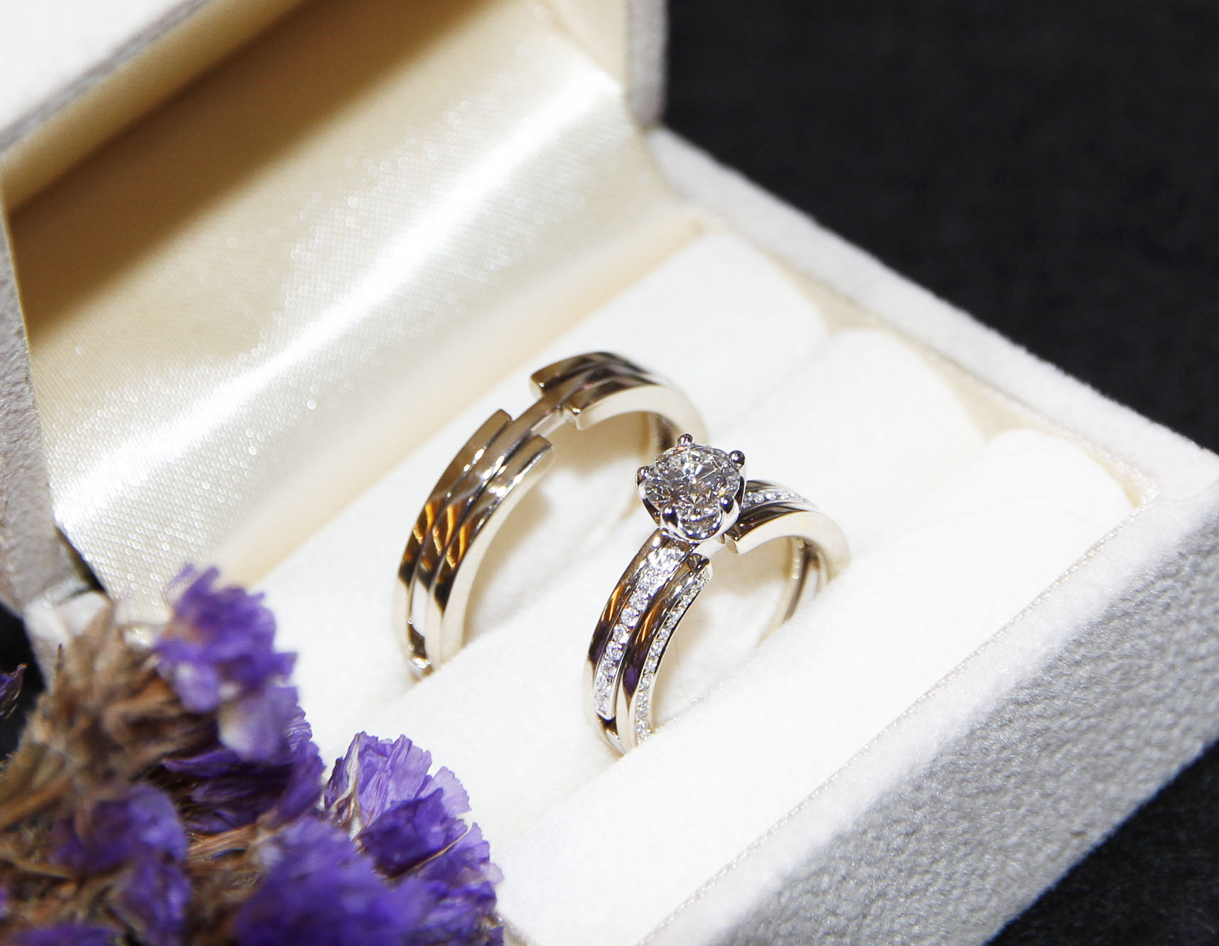 In 2020, we have seen many couples going back to simple romantic pure and glossy white bands, with added fine and sophisticated Victorian details on the sides, like milgrains and carvings. Many engrave the couples’ own fingerprints, handwritings, or customised messages in unique font types within the rings too.