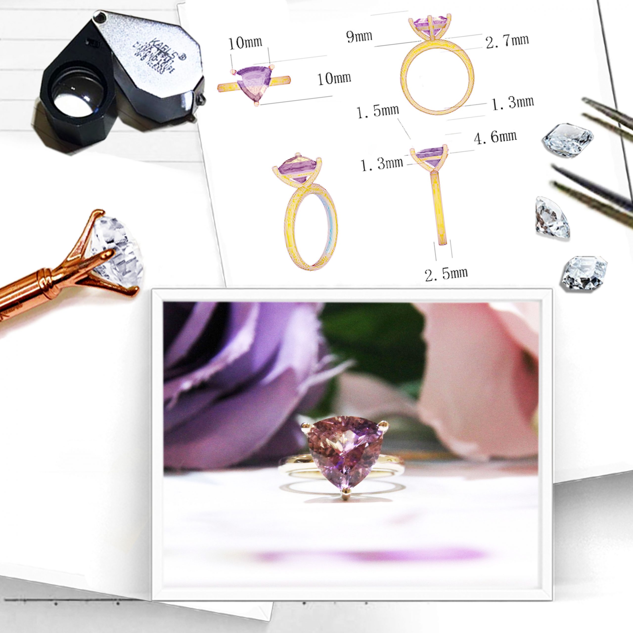Amethyst is the most loved purple gemstone from the quartz family. It is famous for it’s representation for peace, calm, and tranquility, and is believed by some to have healing properties. It is also widely available and therefore affordable, but worth higher when it is carefully cut, mounted and customised into sophisticated design of engagement rings or wedding rings.