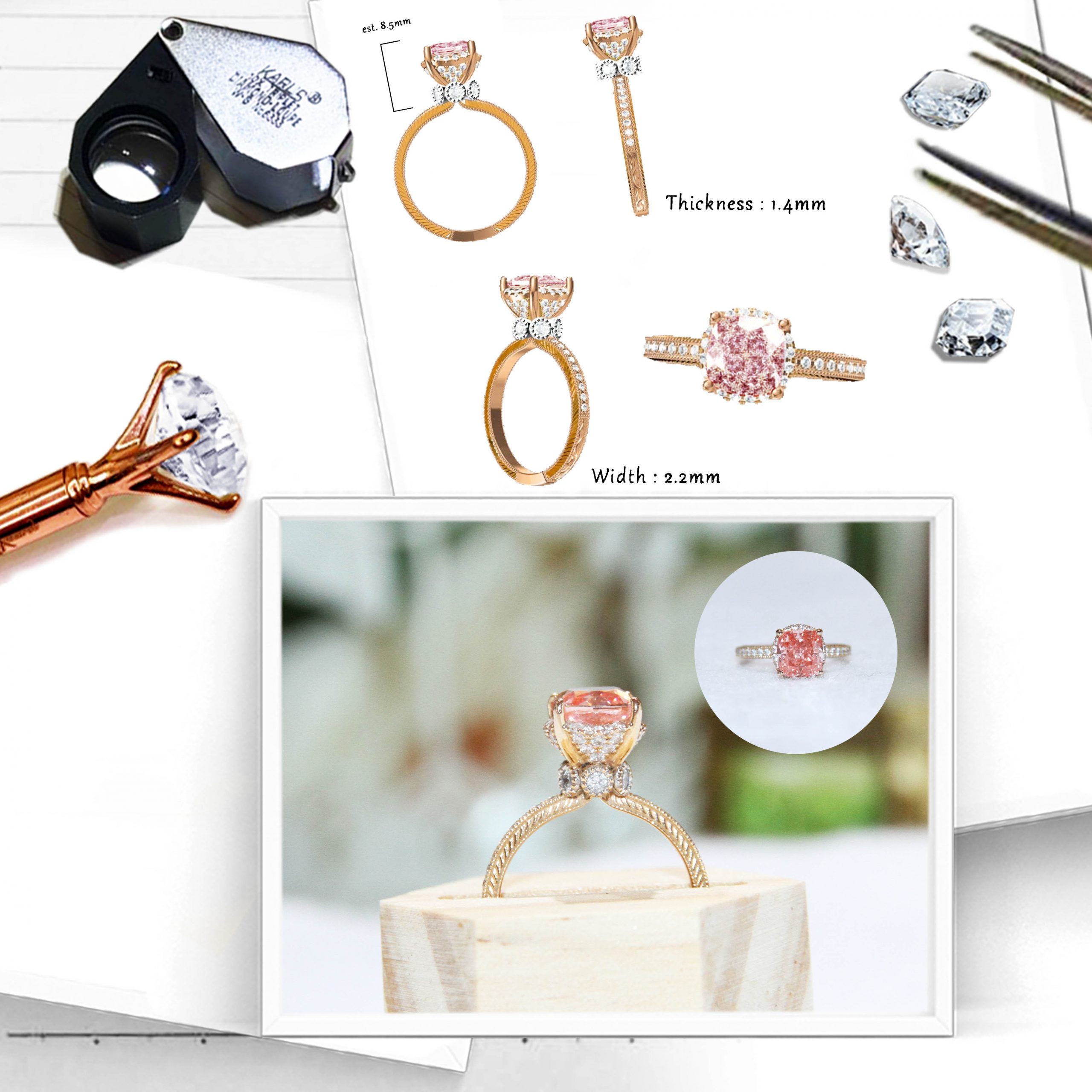 | The most loving way to surprise her is with an extremely rare and intensely pink diamond like these #eClarity Pink Diamond Engagement Rings. All natural and organic, with GIA certifications. For the finishing touch, add a splash of colourless round brilliant diamonds, and prepare to be in the limelight of love. #ThisIseClarity #Pinkdiamond |