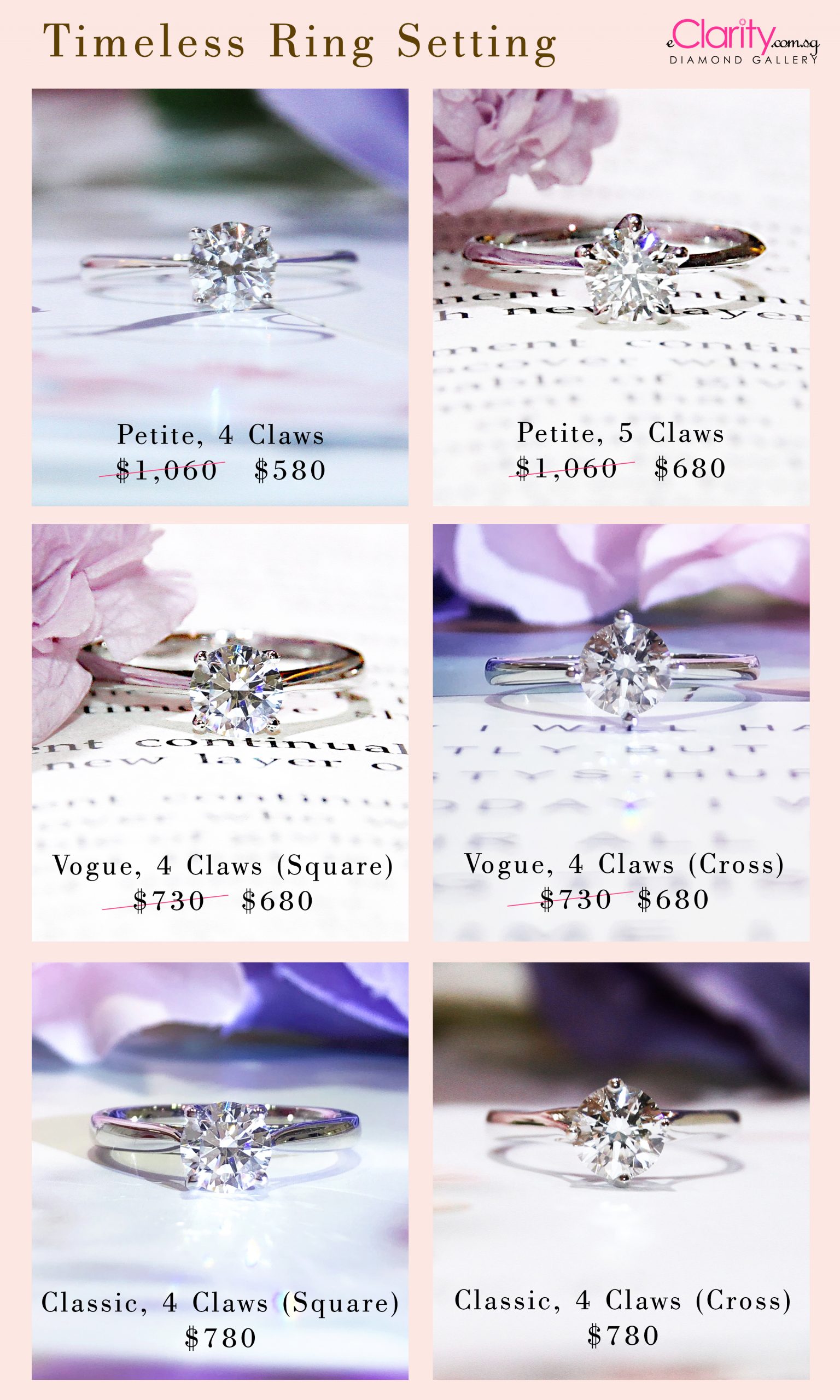 Proposal ring designs, Part 2. Feeling love, the flow of curves of each diamond ring design here is highlighted with duo gold colours or layered tiers, which magnifies the striking essence of the middle diamond which is GIA certified.