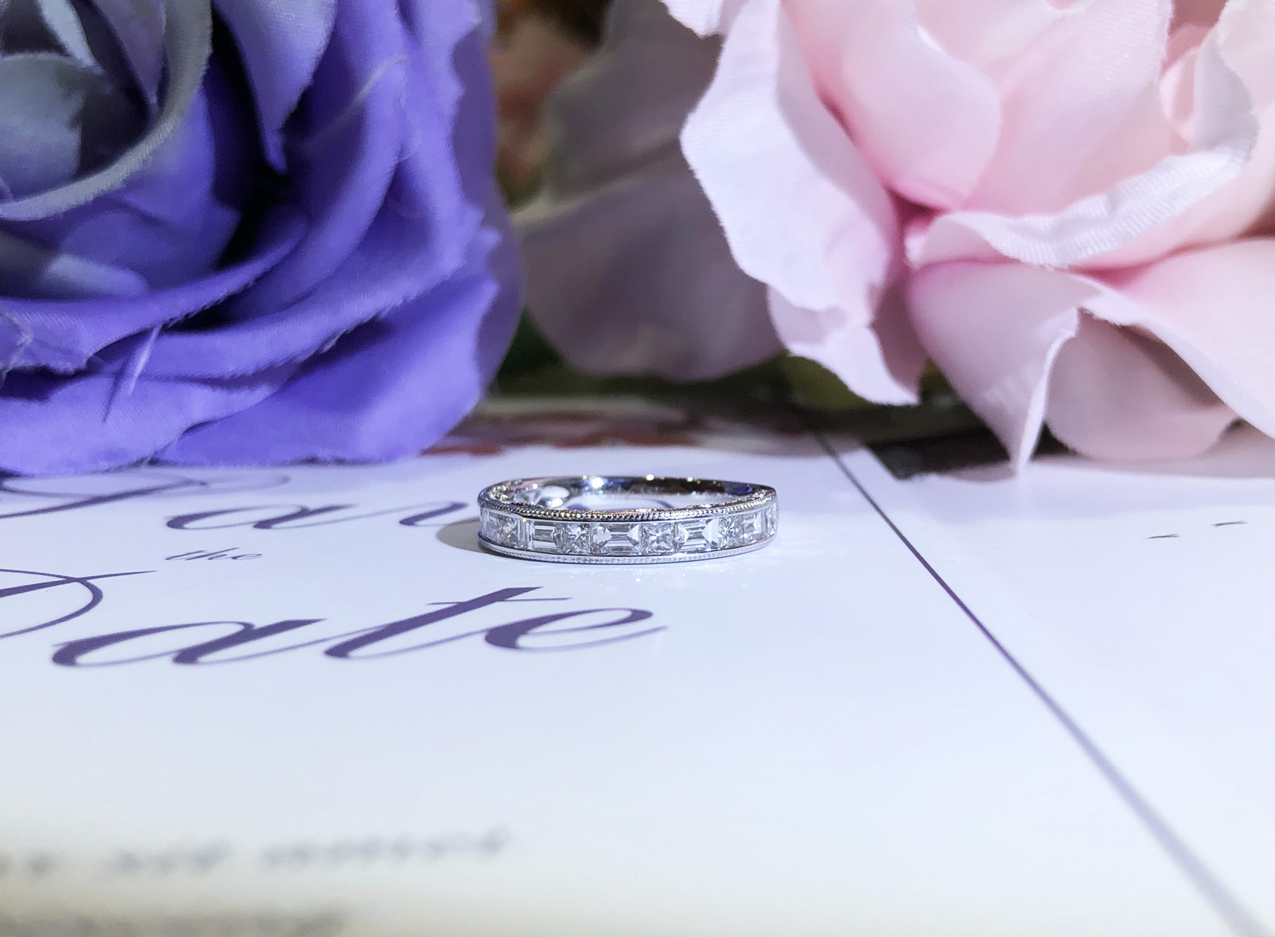 As the name implies, eternity ring symbolizes never-ending and long-lasting love. The ring generally features half circle or full circle of diamonds. Eternity ring is absolutely a perfect gift for anniversary or any meaningful occasions with its shine and meaning behind.