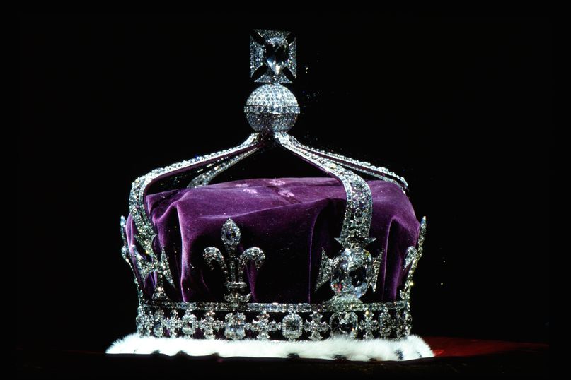 This 105 carat gemstone sits on the Maltese Cross at the front of the Queen Mother’s Crown. Its name is derived from the Persian word Koh-i-Noor that means “Mountain of Lights”. It was found in Pradesh in the 13th century and had been fallen into the hands of many rulers as new ruler took over the reigns amongst wartime.